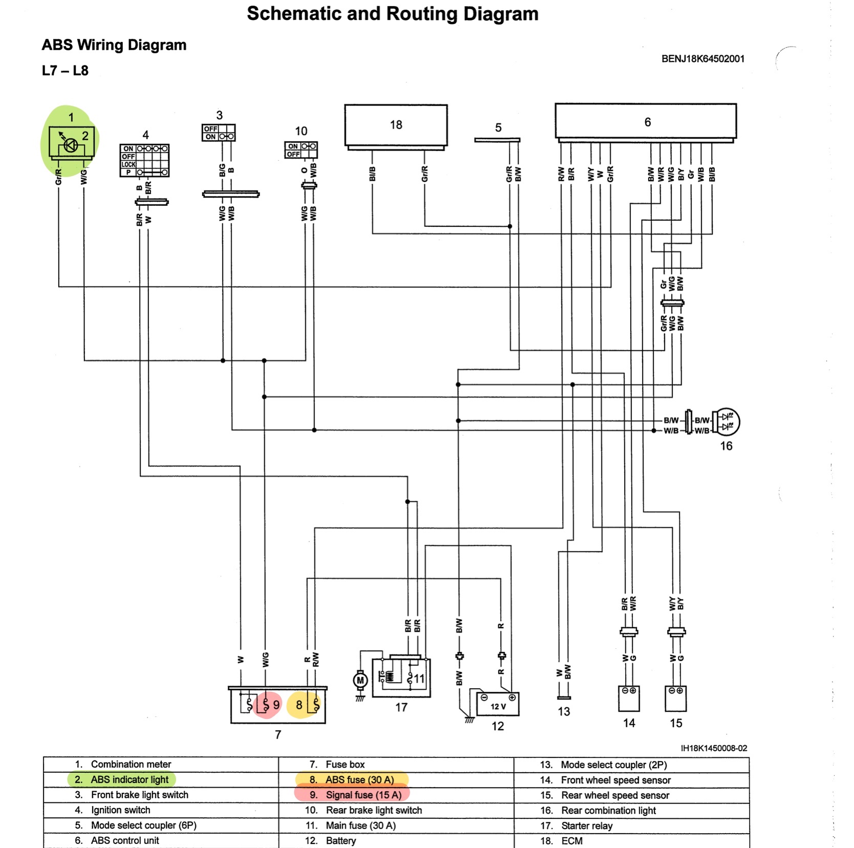 Wenn ich das richtig sehe ist das grau/rote MINUS vom ABS Steurgerät kommend, das W/G sieht nach PLUS aus. Da die ABS-Leuchte ja eine LED ist ist die Polarität festgelegt.