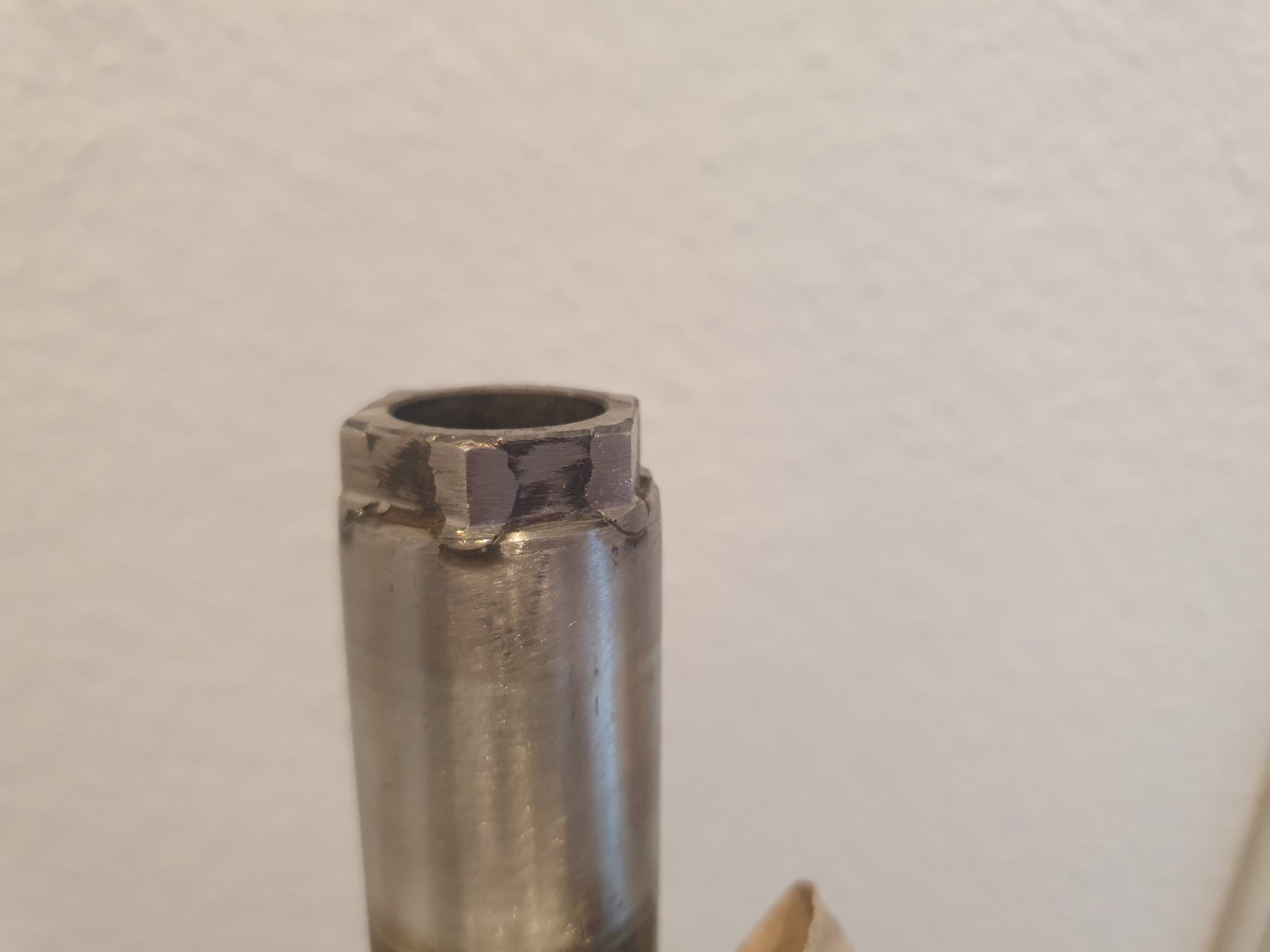 Die Achse war leider schon etwas rundgelutscht am Außensechskant. Nichts was ein bisschen Auftragsschweißen nicht beheben könnte
