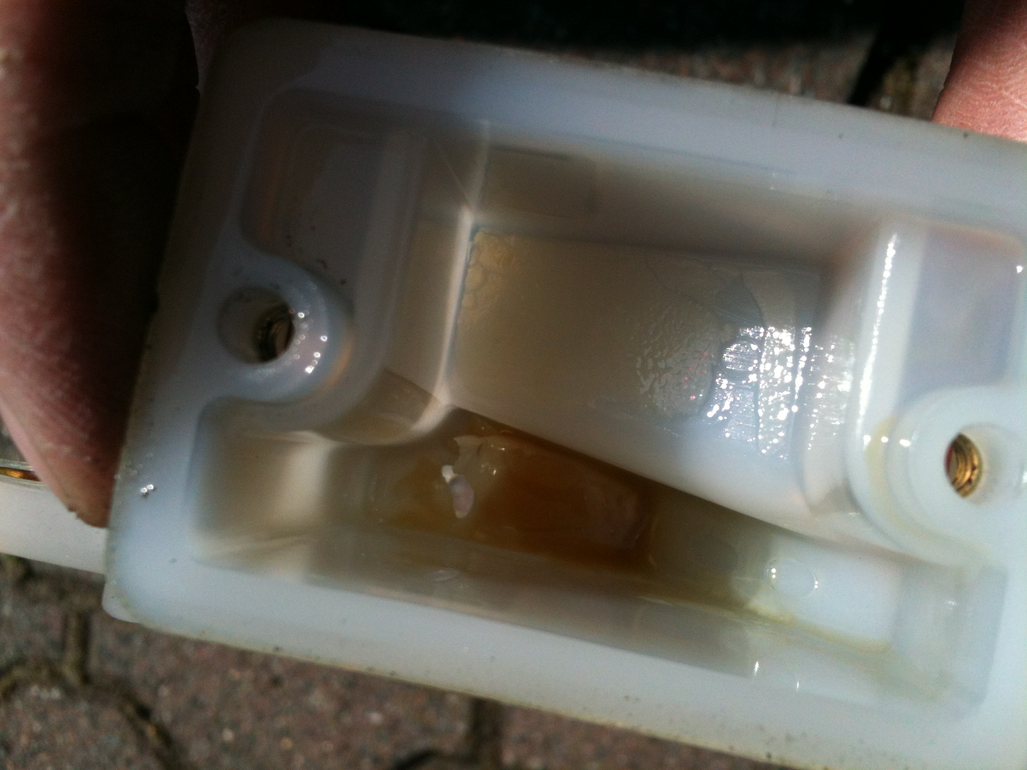 Es schwebten mehrere dunkle "Flüssigkeitsbrocken" im Ausgleichsbehälter.