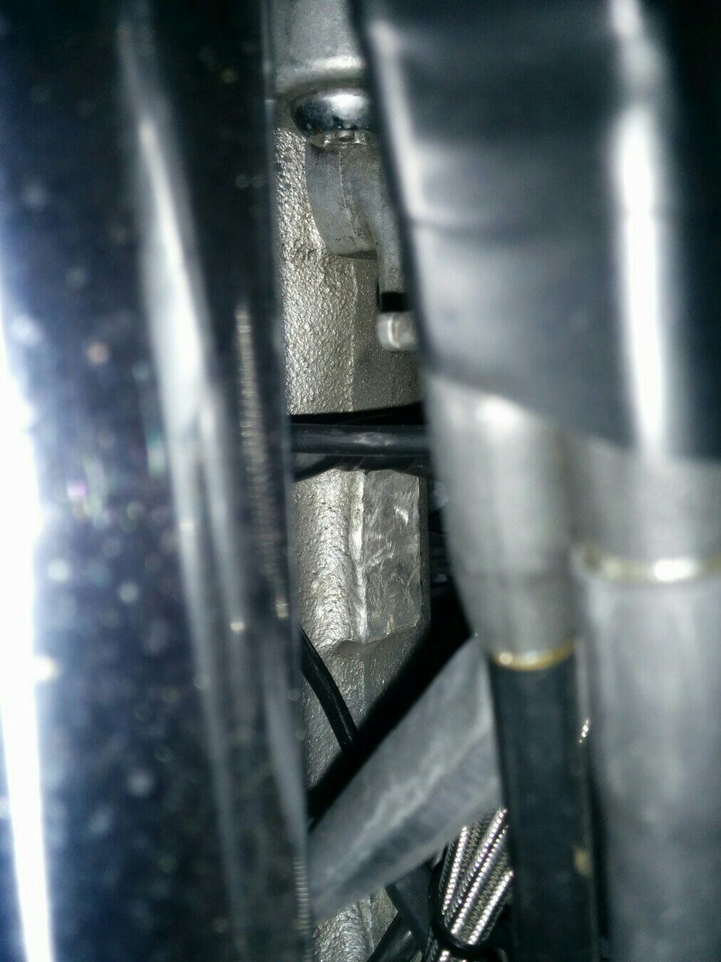Nun bin ich auf die furchtbar ketzerische Idee gekommen, die Dinger einfach abzufräsen. Ich bin mir sicher, daß ich sie nie wieder brauch und da ich die Tendenz habe, meine Motorräder zu fahren, bis sie auseinanderfallen, mach ich mir auch keine Gedanken um des deutschen größte Sorge, den Wiederverkaufswert. Frägt sich nur, wie massiv die Teile sind. Lauf ich da Gefahr, auf einmal Fenster im Lenkkopf zu haben? Mir ist natürlich klar, daß ich den Lenkanschlag dran lassen muß.