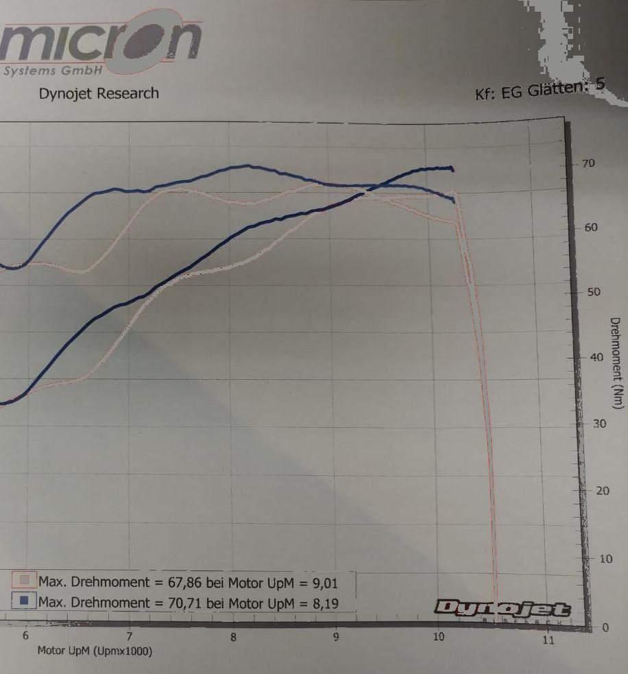 Zu Deiner Frage warum oft Drehmoment verloren geht wenn Leistung etwas erhöht wird. Das liegt meistens daran dass nur einzelne Teile verändert werden und nicht die ganze Peripherie aufeinander abgestimmt wird. Man beobachtet bei einer "schärferen" Einstellung des gleichen Motors oft dass der untere Drehzahlbereich leidet und das liegt vorallem an Spülungsverlusten.