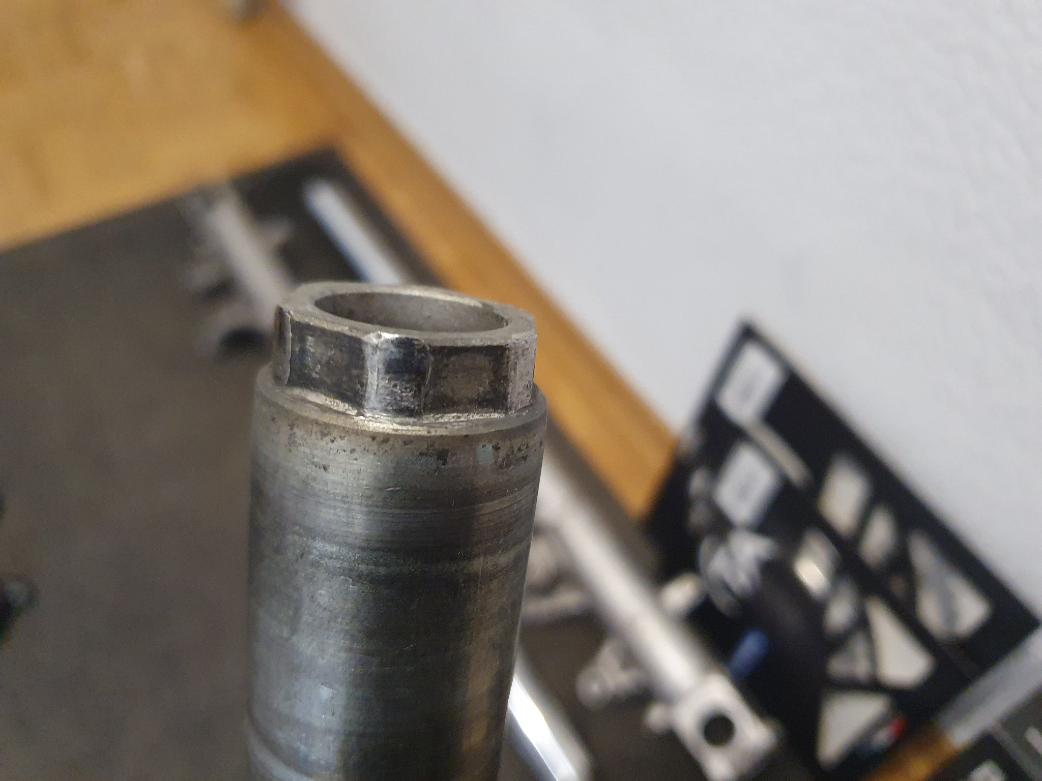 Die Achse war leider schon etwas rundgelutscht am Außensechskant. Nichts was ein bisschen Auftragsschweißen nicht beheben könnte