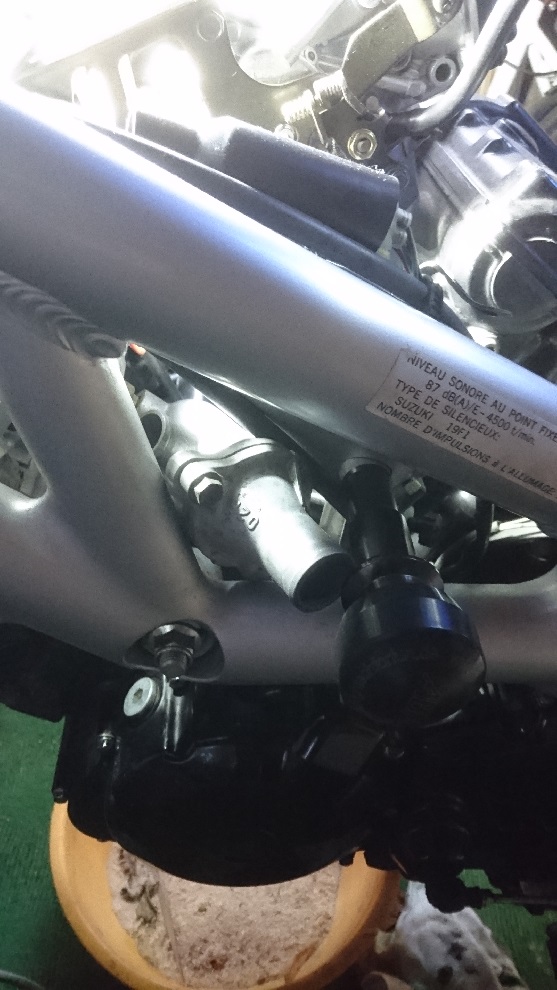 Ich habe die Kühlwasserschläuche am Thermostatgehäuse und den entsprechenden Gegenstücken (Kühler, Wasserpumpe) abgemacht, was gar nicht so einfach war, da das trockene Gummi doch sehr an den Anschlüssen hing. Und man mag es kaum glauben, aber das Thermostatgehäuse mit Thermoastat passt mit etwas drehen und drücken (ohne Schlauchstücke) durch das Rahmendreieck
