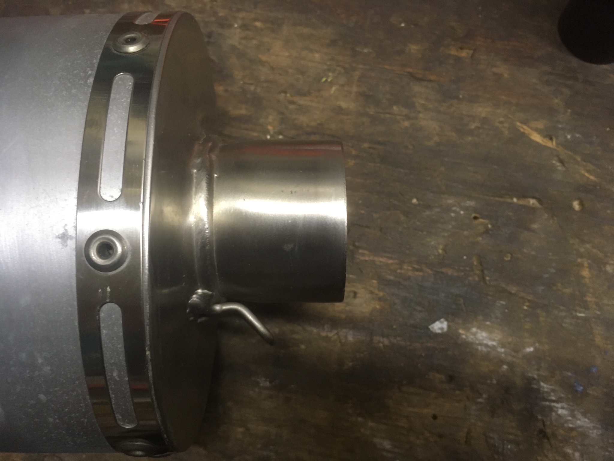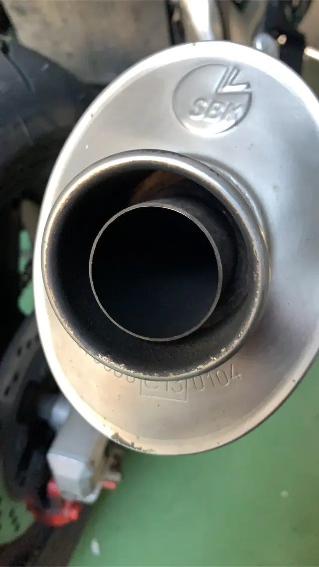 Was ich nicht weiss: Es sieht aus als wäre in dem Auspuff ein DB eater, allerdings fest verbaut (vielleicht heisst das dann nicht mehr db Eater, weiss ich aber nicht). Hinten ist ein grösseres Auslassrohr und da drinnen kommt ein etwas kleineres Rohr raus. Das sieht aber nicht so aus, ob man es ausbauen könnte. Wenn ich in das kleinere Rohr reinschaue siehte es aus, als ob nach ca 20 cm eine Wand kommt. Dort sieht man zwei Schweisspunkte. Jetzt habe ich gedacht, vielleicht kennt ja hier jemand das Ding und kann mir sagen, wie es sein soll. Vielleicht waren dort Löcher und jemand hat es zugeschweisst wegen dem Tüv oder so.