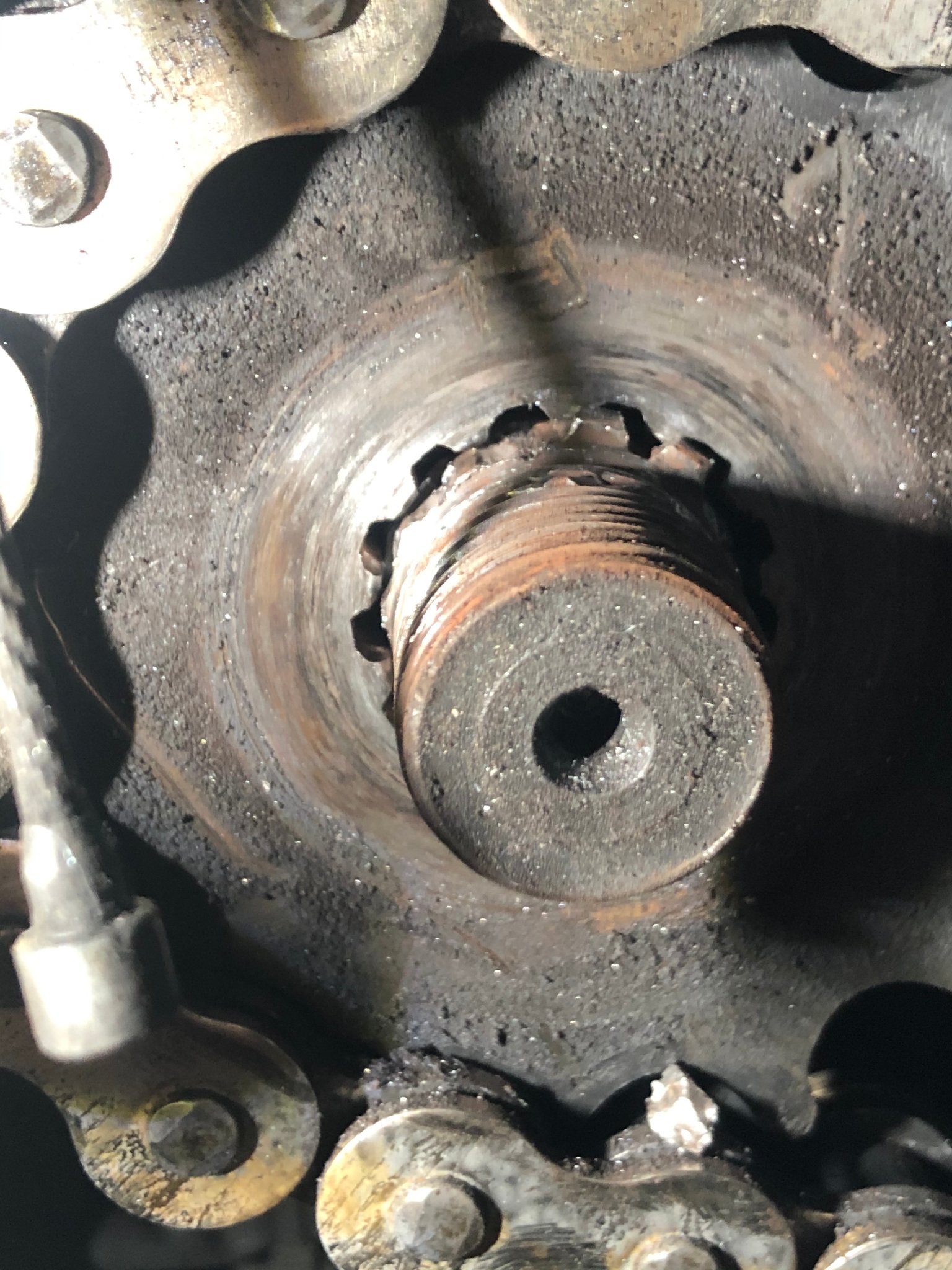 Ich hatte das Problem 2003 auch, die Mutter war lose und meine Welle sah ähnlich aus (bei mir mit Zahnriemen im Urlaub in Spanien). Damals hatte ich noch keine Kamera, die Welle liegt aber noch hier.