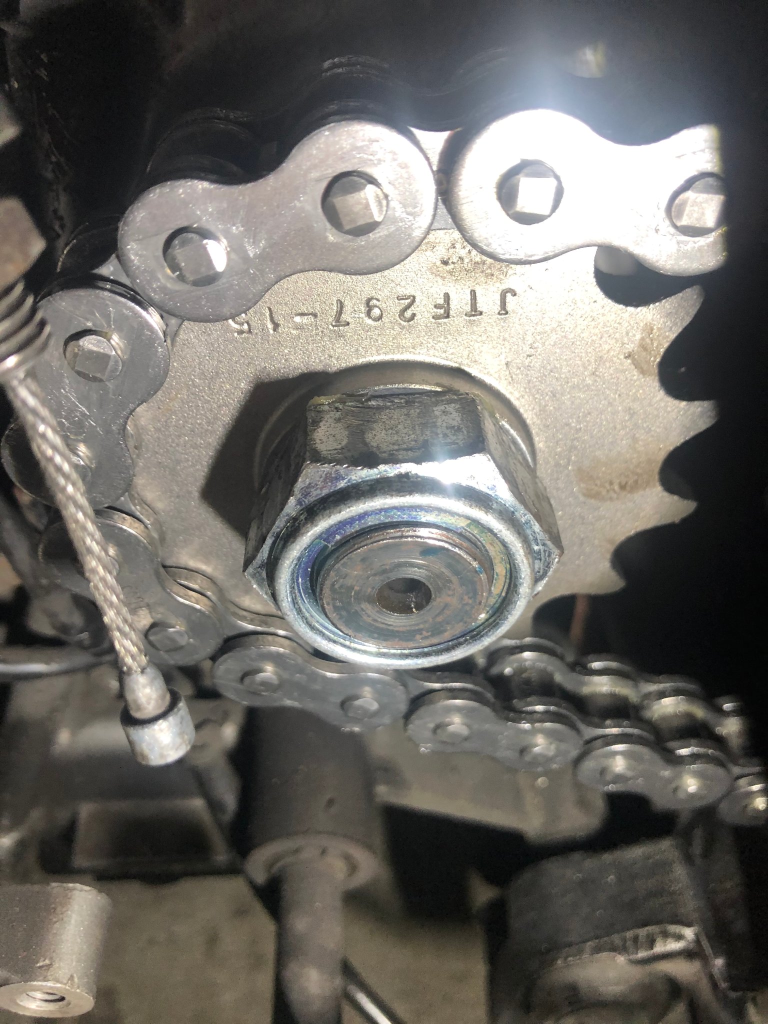Bin stiller Mitleser, hätte da eine Frage für mein Verständnis. Ich dachte eigentlich der Dieter meinte, die Buchse vom Motor sollte gekürzt werden und dann gegen den Bund vom neuen Ritzel ersetzt werden. Dann würde die Verzahnung dort tragen und das Ritzel sitzt in der richtigen Ketten Position, aber jetzt ist der Bund außen?