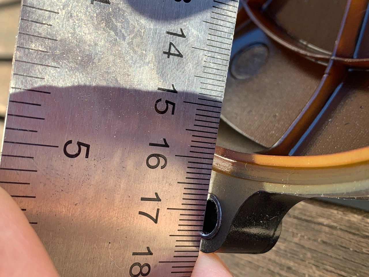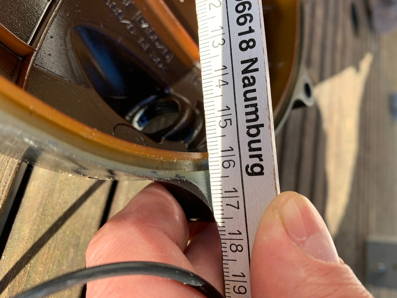 Mit dem Zollstock schätze ich Nut Innenkannte: 160 mm