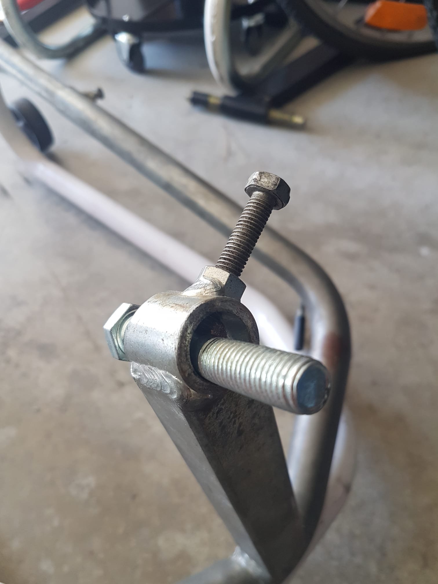 Sehe ich es also richtig, dass es an der zu dünnen Schraube liegt, die im Loch unter dem Lenkkopf etwas Spiel hat und deshalb das Motorrad so lange nach vorne schiebt, bis die Schraube schräg darin steht und verkanntet? Ist also ein ganz genau passender Pin entscheidend oder mach ich was anderes verkehrt, zbsp Motorrad anderweitig gegen rollen sichern etc?