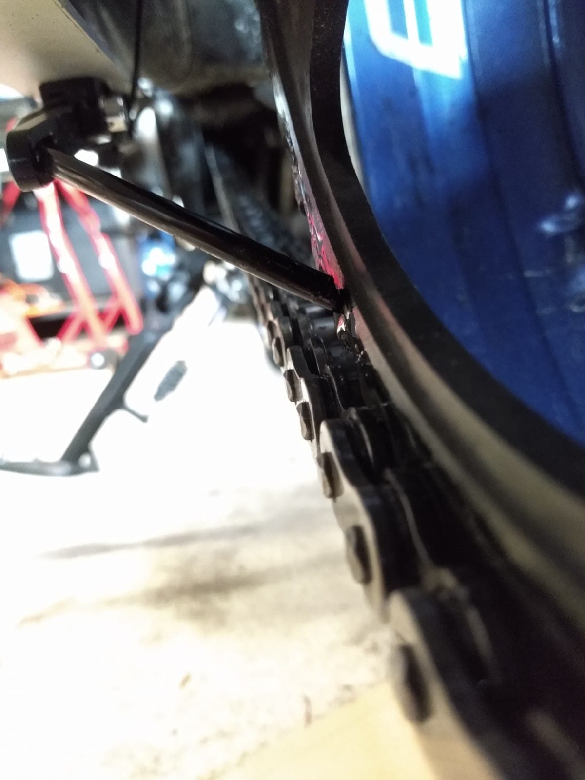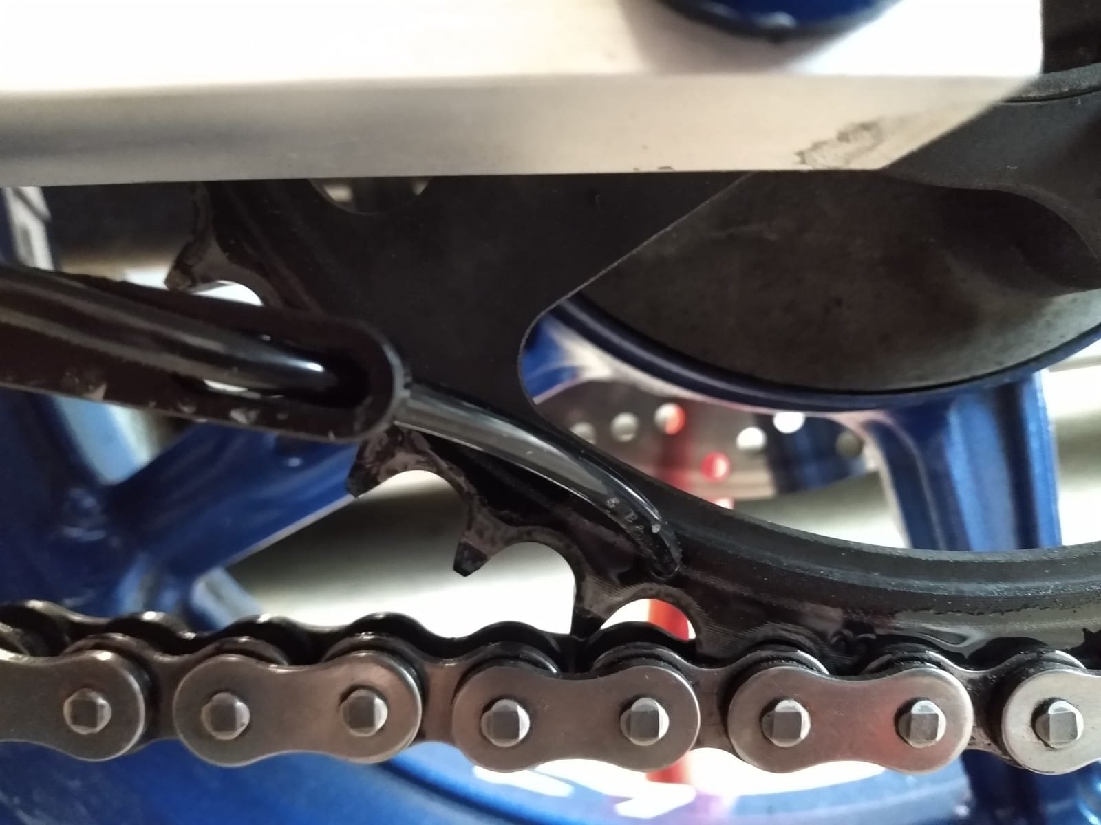 Ich könnte mir höchstens vorstellen, dass die Ölspritzer an der Position von der Düse liegen. Aber ich hab auch mehrmals gelesen, dass die Düse max. einen Kettengrund vom Anlaufpunkt der Kette am Kettenrad entfernt sein soll. Das ist bei mir eigentlich der Fall. Der Abstand vom Schlauch zum Kettenblatt ist auch relativ gering (s. Bild)
