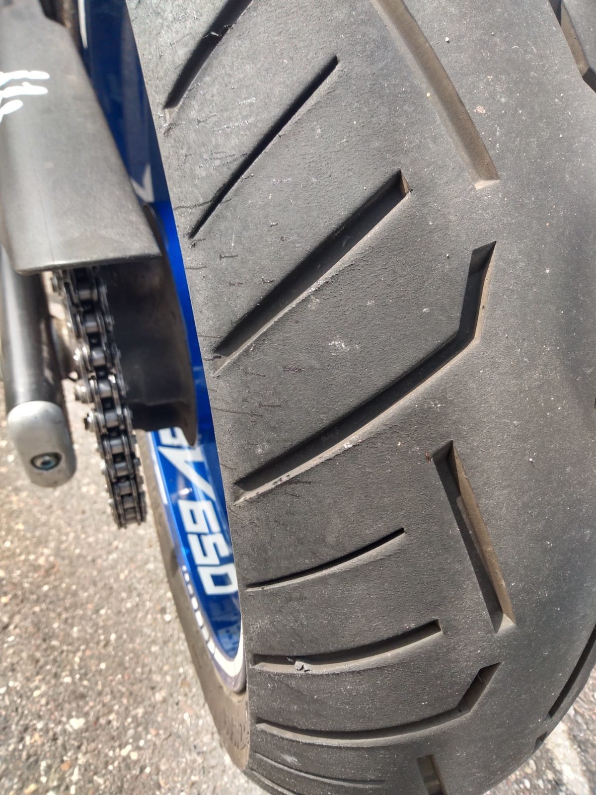 Ich versteh auch nicht ganz wie das Öl auf die linke Reifenlauffläche kommt. An der Flanke waren auch paar Spritzer, aber ich glaube kaum, dass die dann auf die Lauffläche gelaufen sind.