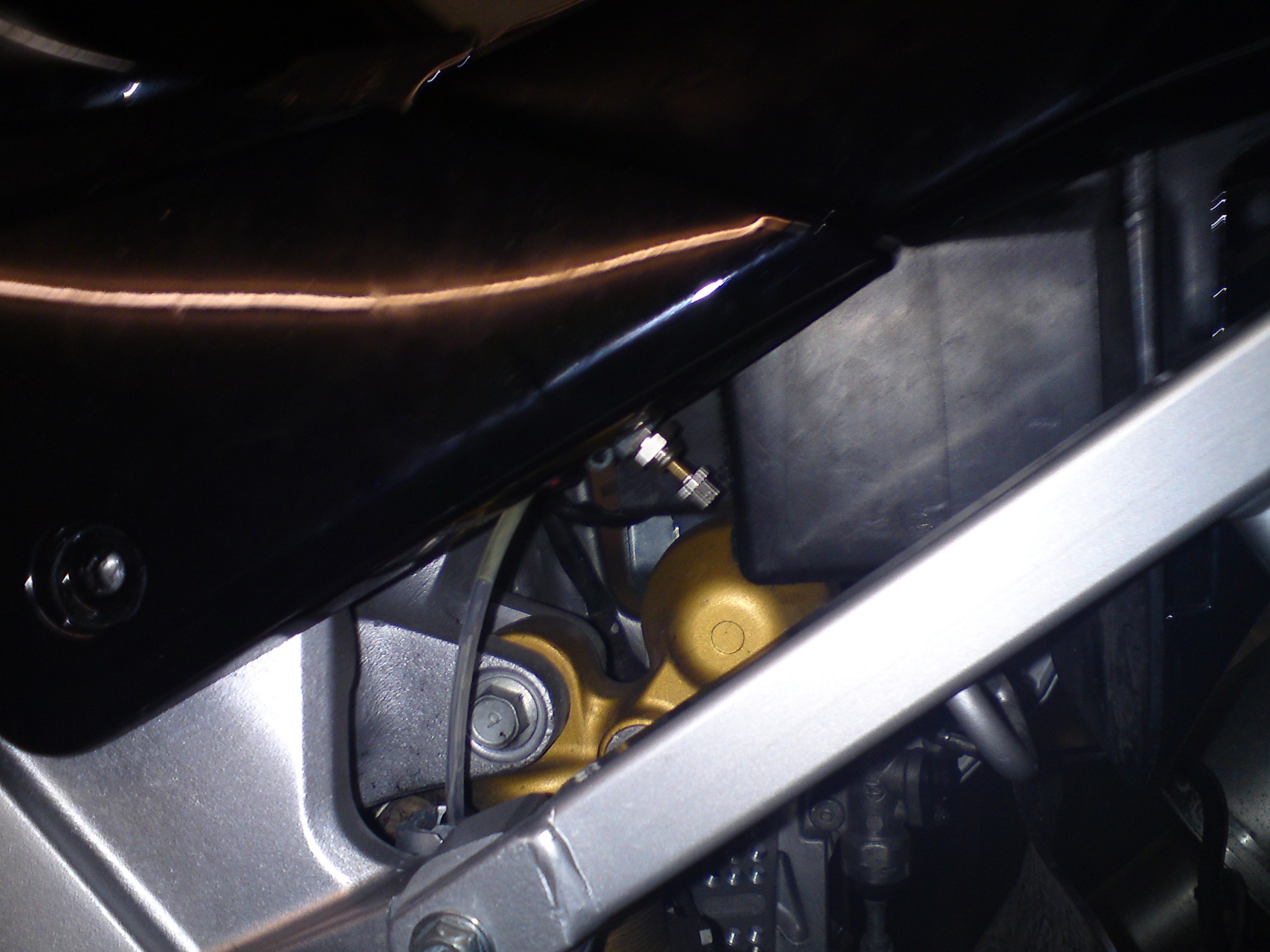 Hintergrund ist, daß ich keinen Schlauch an der Schwinge und keinen Tropfer am Kettenblatt haben wollte.