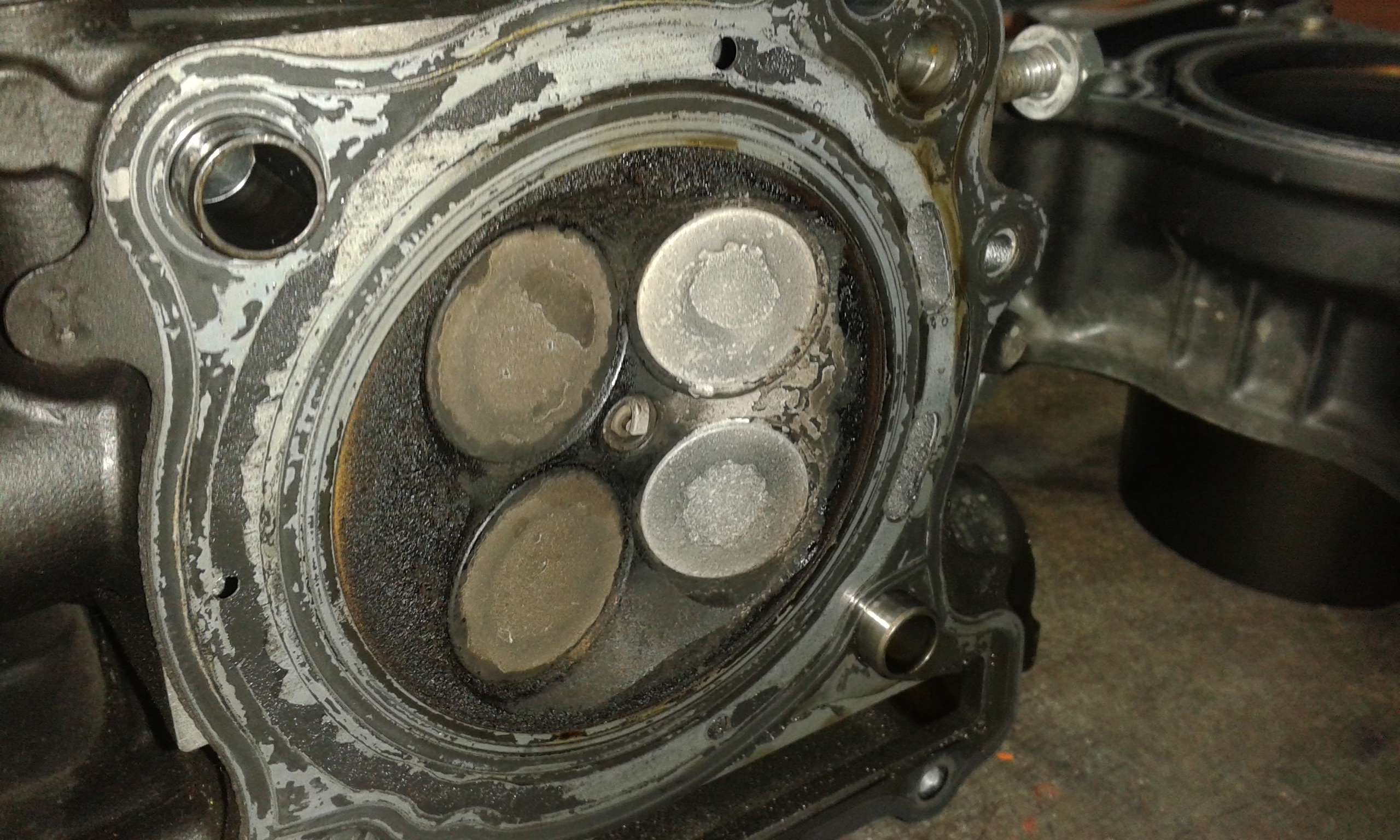 Jetzt der einzige richtige "Schaden" bis jetzt. Beim Wechseln der Ventilschaftdichtungen und anschliessendem Einschleifen ist das aufgefallen: