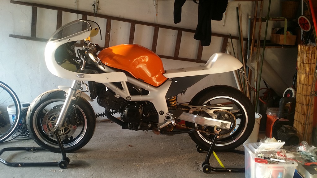 Und auch die neuen Fußrasten machen sich gut an der Mopete gleich viel besser ohne das Gummigeraffel Also heute Abend geht es wieder ein wenig weiter, evtl geht Sonntag alles noch zum lackieren.