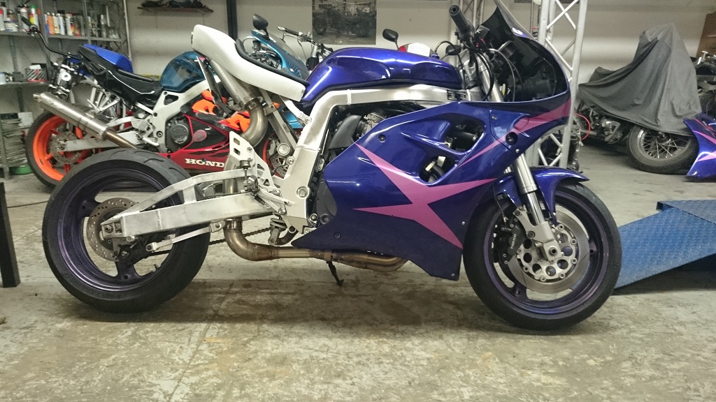 Dazu, Umbau auf SBL, Brems und Kupplungspumpe der 1250er Bandit, Modifikation der Verkleidung und Scheibe.