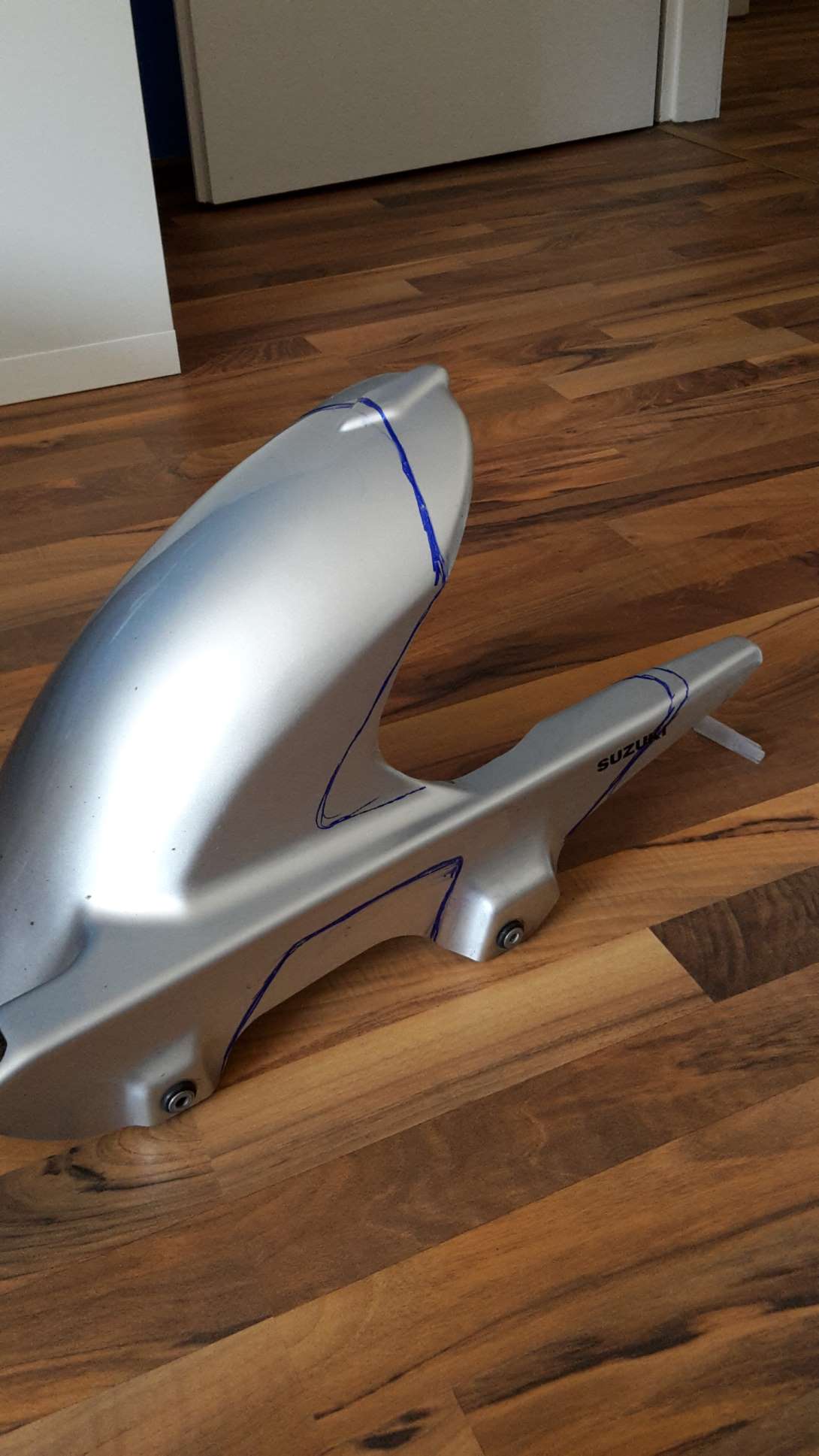 So eben noch die Hinterradabdeckung etwas modifiziert, wenn ich schon dabei bin das Teil gleich zu lackieren. Wollte sie etwas filigraner gestalten.