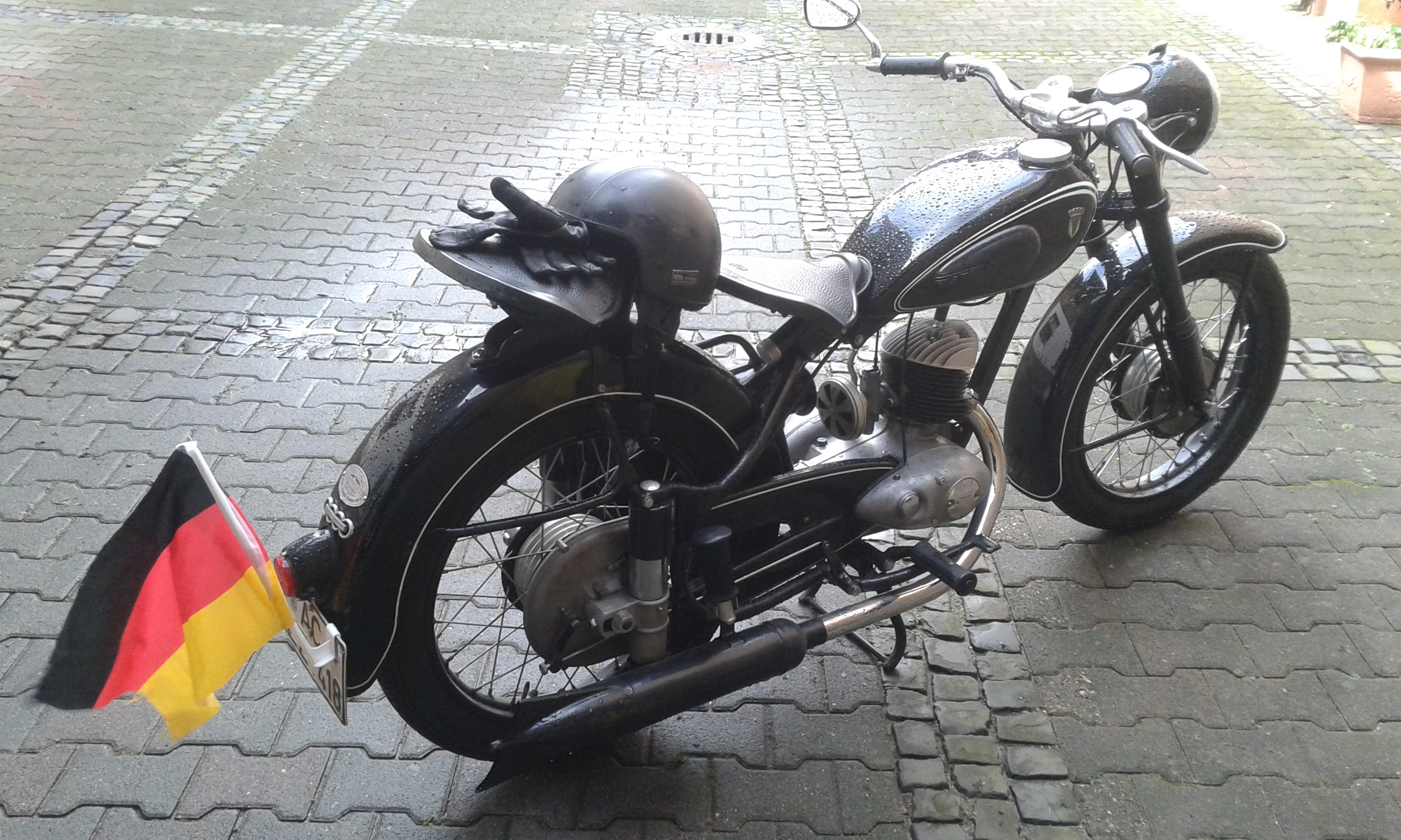 damals wäre es nicht gegangen weil die Nummernschilder so Ecken hatten... ob es 1954 bei der WM die Fähnchen schon gab?