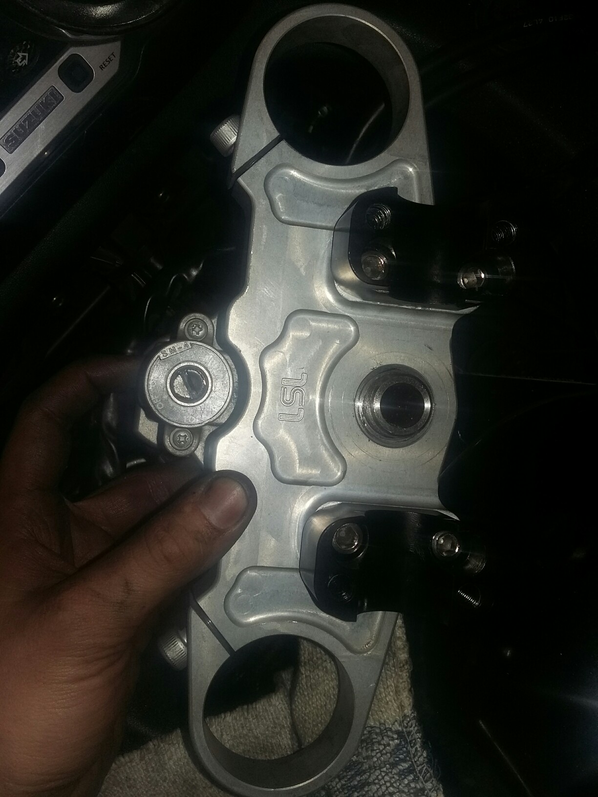 Für die obere GSXR LSL Gabelbrücke eine Buchse gedreht und es passt alles.