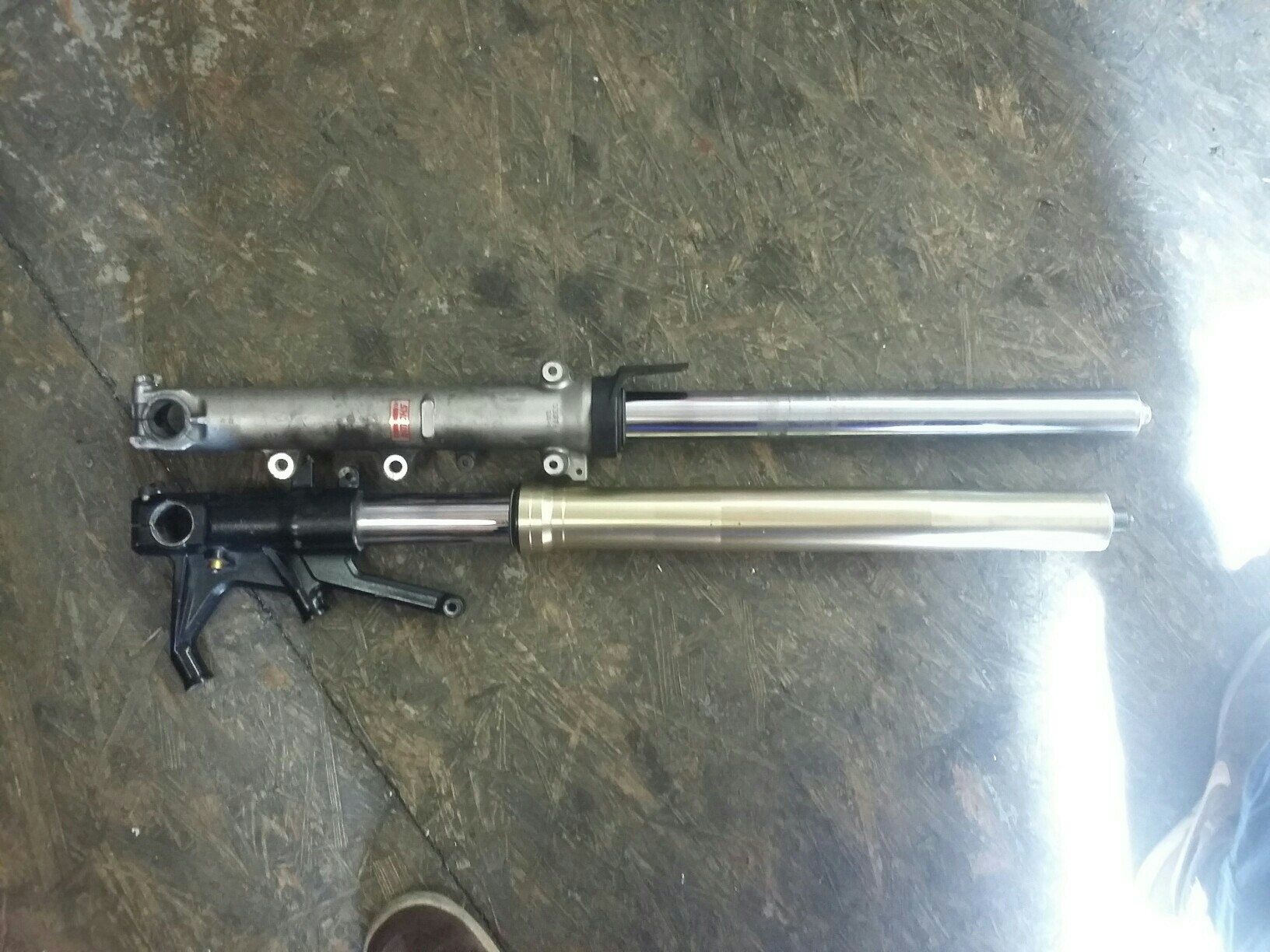 Bandit Gabel Joch in die untere GSXR Gabelbrücke gepresst.
