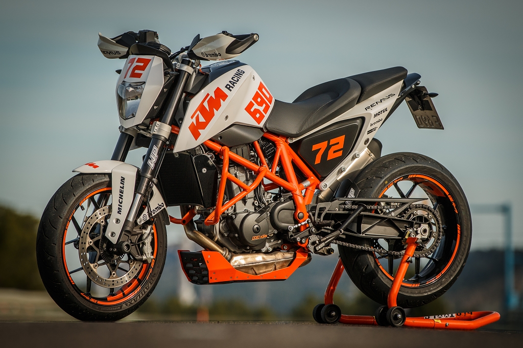 Auf der Straße fährt sie ihre KTM 690, auch etwas aufgehübscht.