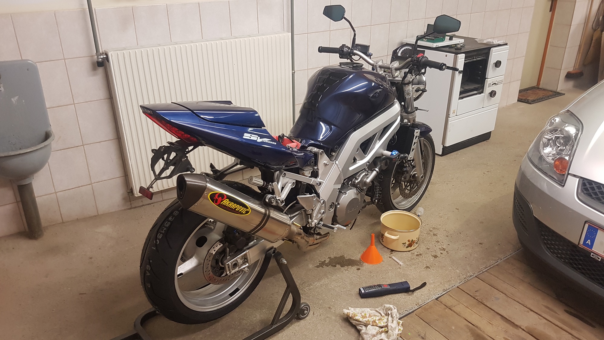 Bin dann beim Hurric SP Carbon 360mm gelandet. Dieser war im Vergleich zum Akrapovic genau so schwer. Der Sound war wie der Topf selbst absoluter Mist. Habe leider nicht mehr Fotos da dieser nach ca 500km sofort wieder runter kam.