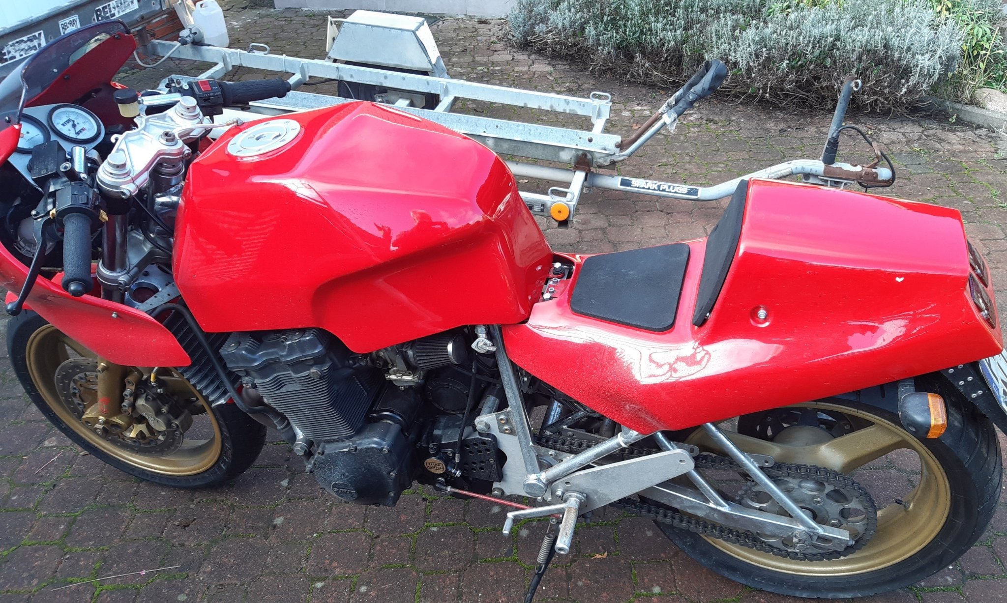 Nach fünfzig Jahren Moped fahren mein erster 4-Zylinder. Eine Moko 1100 mit GSXR Motor. Seit 25j abgemeldet, und im Dornröschenschlaf. :) moped