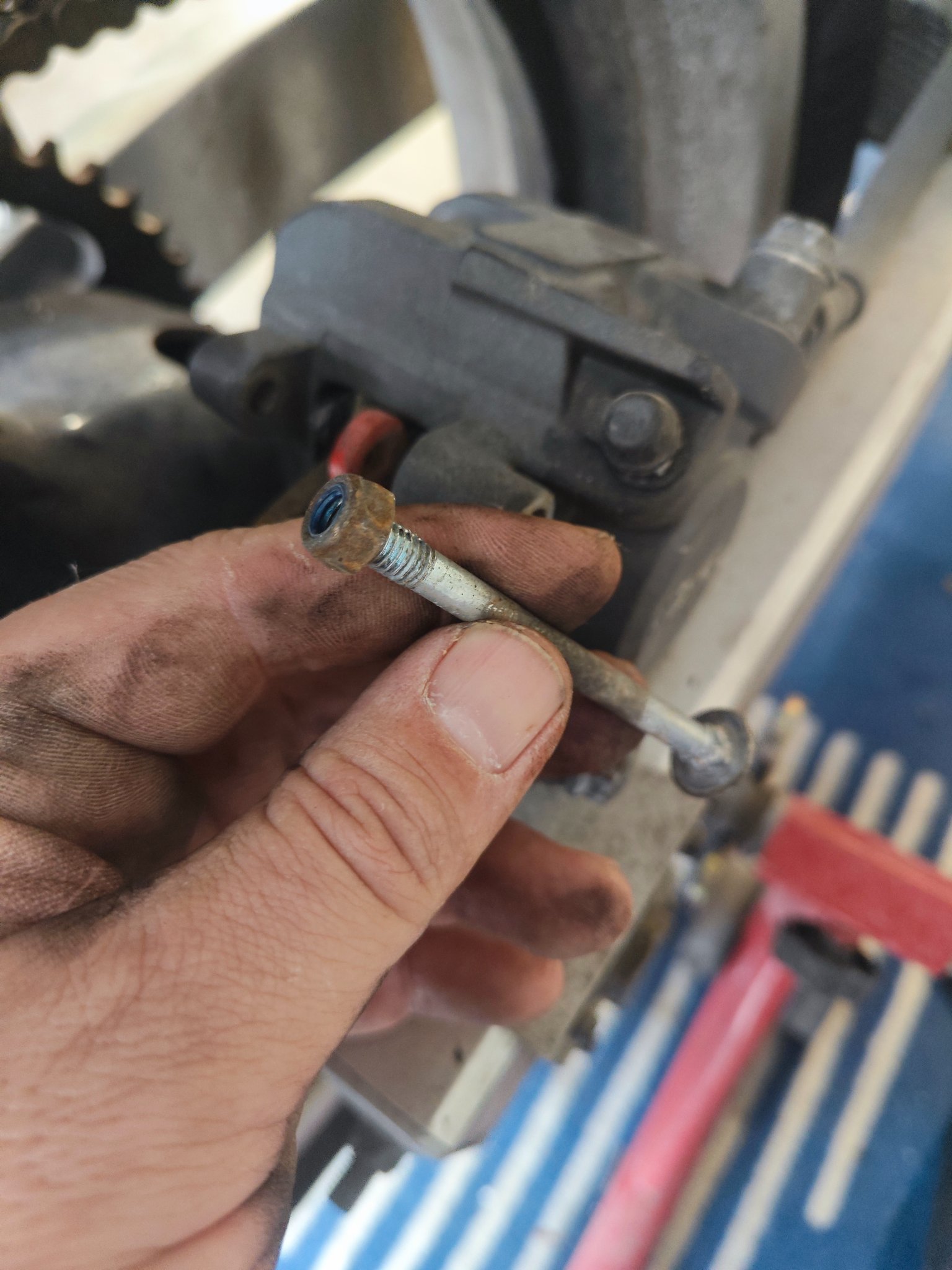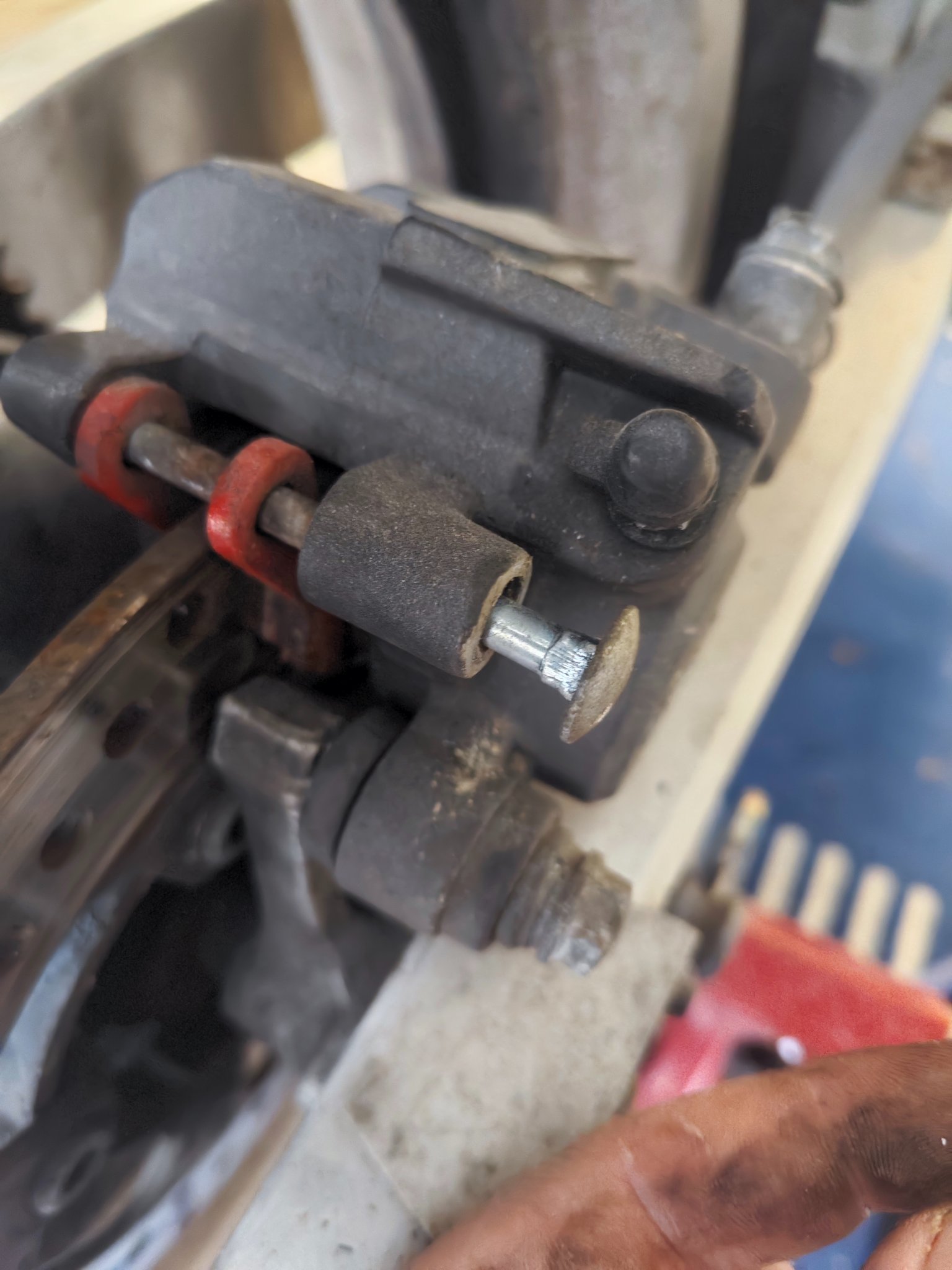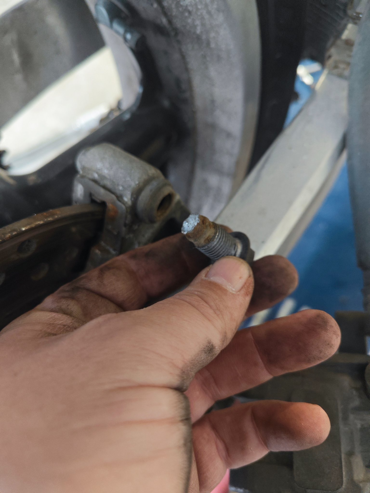 Dabei ist dann auch gleich noch die Bremssattelhalteschraube abgerissen.