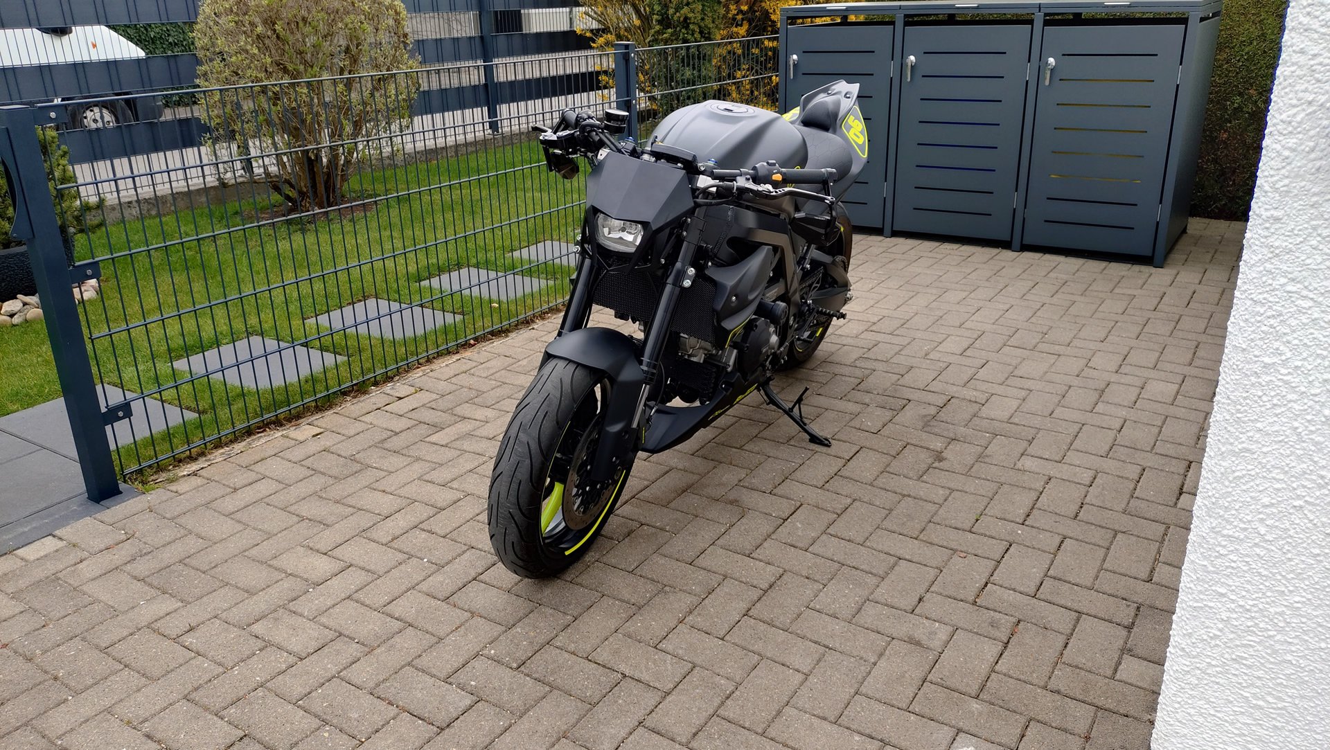 Motor noch schwärzen, und vielleicht n bissl weniger Neon, dafür aber 2geteilte Schwarz Gelb Felgen (Sumo Style https://www.prismaticpowders.com/galler ... d-pss-1104)