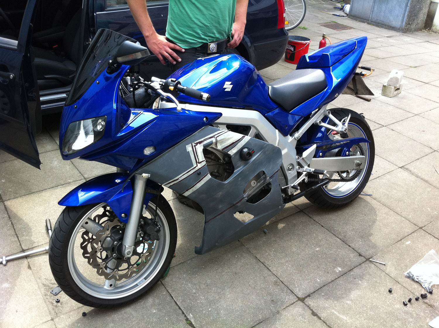 So, nach laaaangem hin und her und ewiger Suche nach dem richtigen Hersteller und der richtigen Verkleidung, sind mein bester Freund und ich heute endlich mal dazu gekommen die Verkleidung der Gixxer 600 K4 an meine Kante anzupassen.... zumindest die Linke Seite...