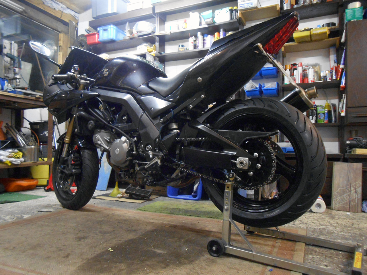 Im Großen und Ganzen sind wir vorerst fertig. Kette muss halt noch vernietet werden und der Bremslichtschalter für das Hinterrad eingestellt werden. Ansonsten ist alles bereit für gutes Wetter und die erste Probefahrt mit neuer Gabel und neuer Schwinge in Kombination!