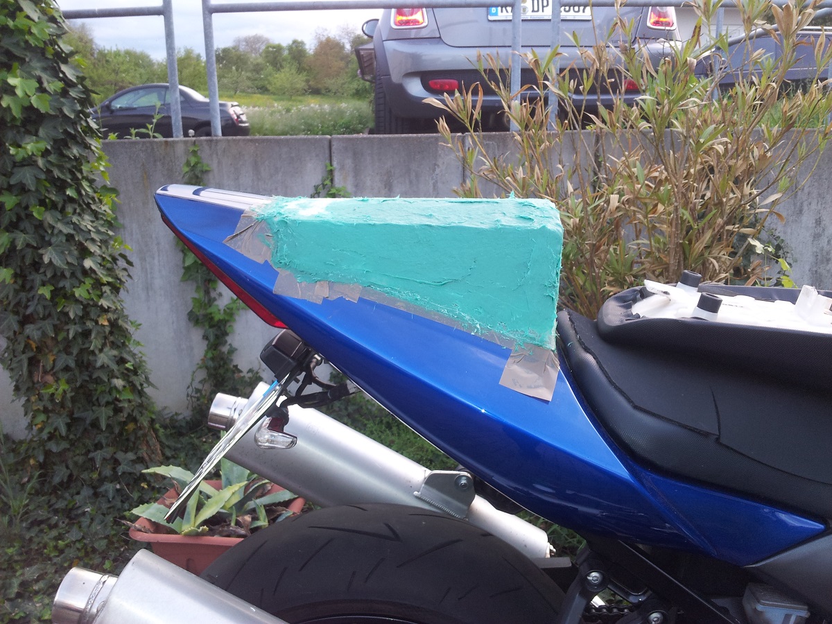 Bin grad am Rumlaminieren mit bissl GFK. es gibt nen racingtauglichen Höcker, also etwas höher als die normale Sitzabdeckung. Hier sieht man schonmal das Pappmodell als Grundgerüst.