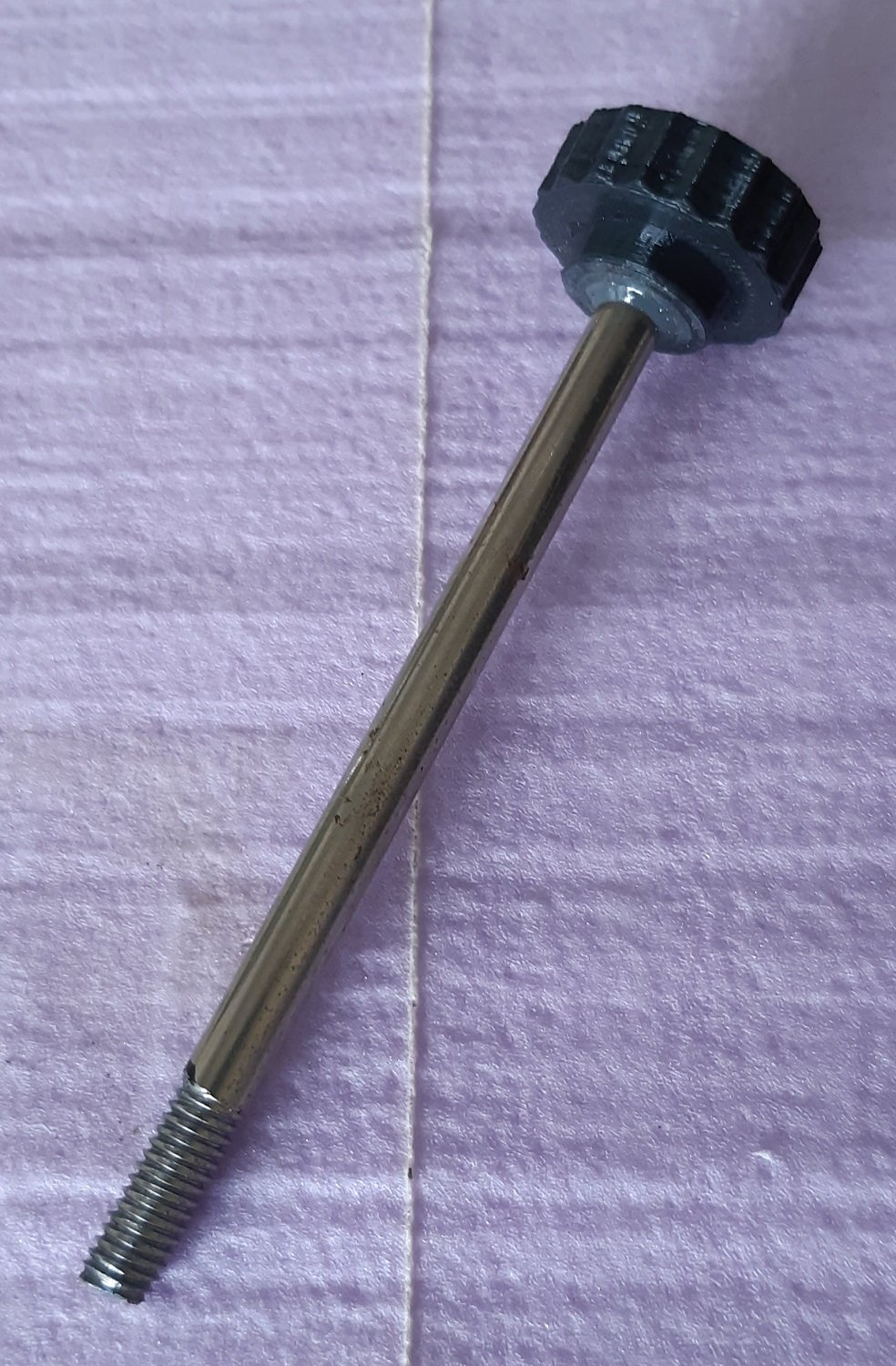 Der Lufi hat seinen Platz im Rahmen wieder eingenommen und passt alles gut. Schrauben habe ich gegen VA getauscht welche ich auf die originalen Längen auch der Drehbank gekürzt habe. Was mir nicht so gut gefallen hat die die Verschraubung von Lufi Deckel. Es war da beim Zerlegen eine rostige Inbusschraube verbaut. Diese habe ich schon durch einen Stehbolzen mit einer Flügelmutter getauscht. Ich fand das Ergebnis aber so richtig überzeugend so dass ich kurz den Drucker angeschmissen und heraus kam eine kleine Mutter welche ich mit den Stehbolzen verklebt habe, jetzt bin ich Glücklich mit der Lösung. Auch habe ich die den Batteriekasten wieder an seinen Platz verbracht….. Schrauben und Hülsen alles Neu da ich das alte rostige und teils zusammen gewürfelte nicht wieder verwenden wollte……