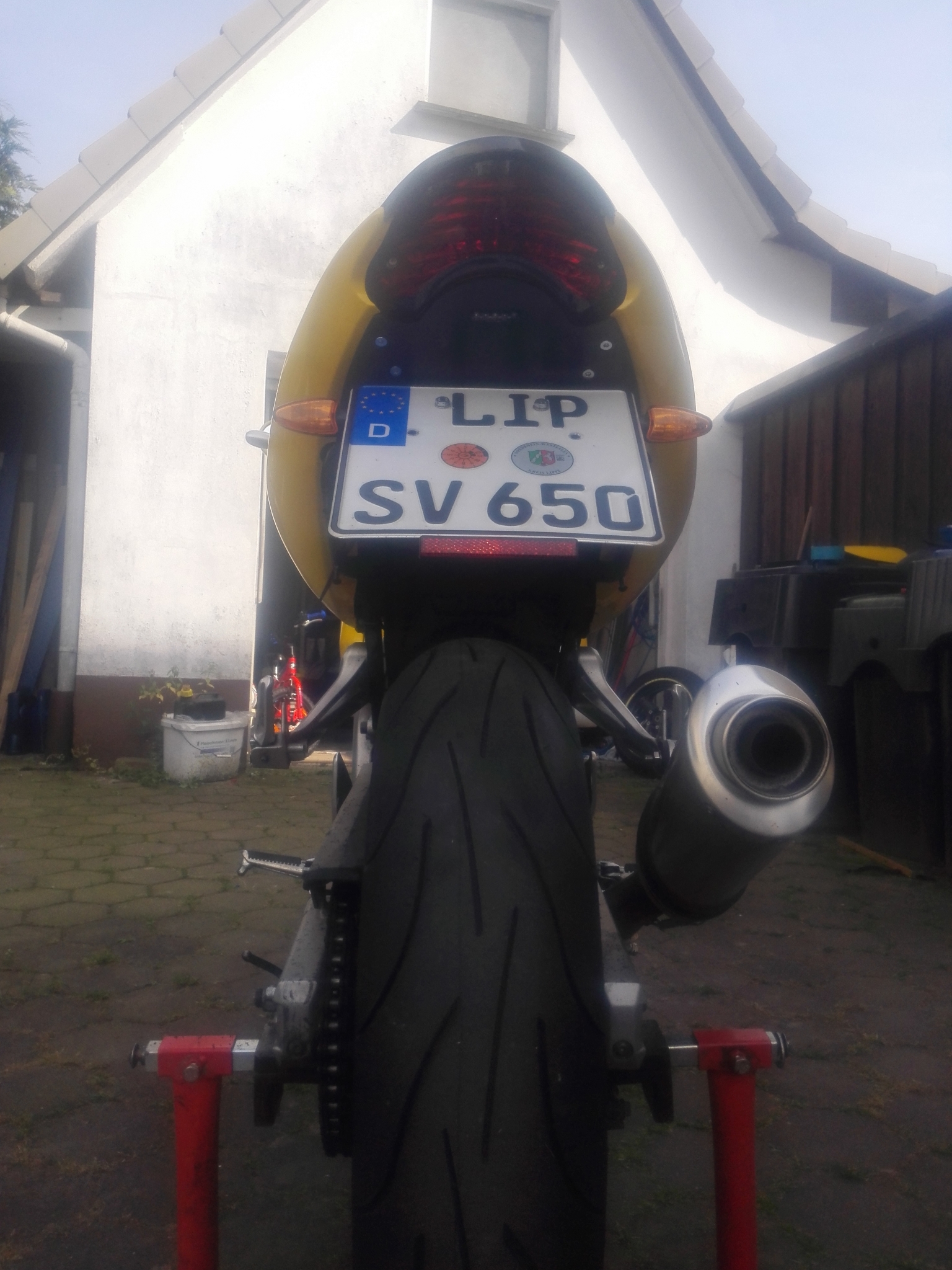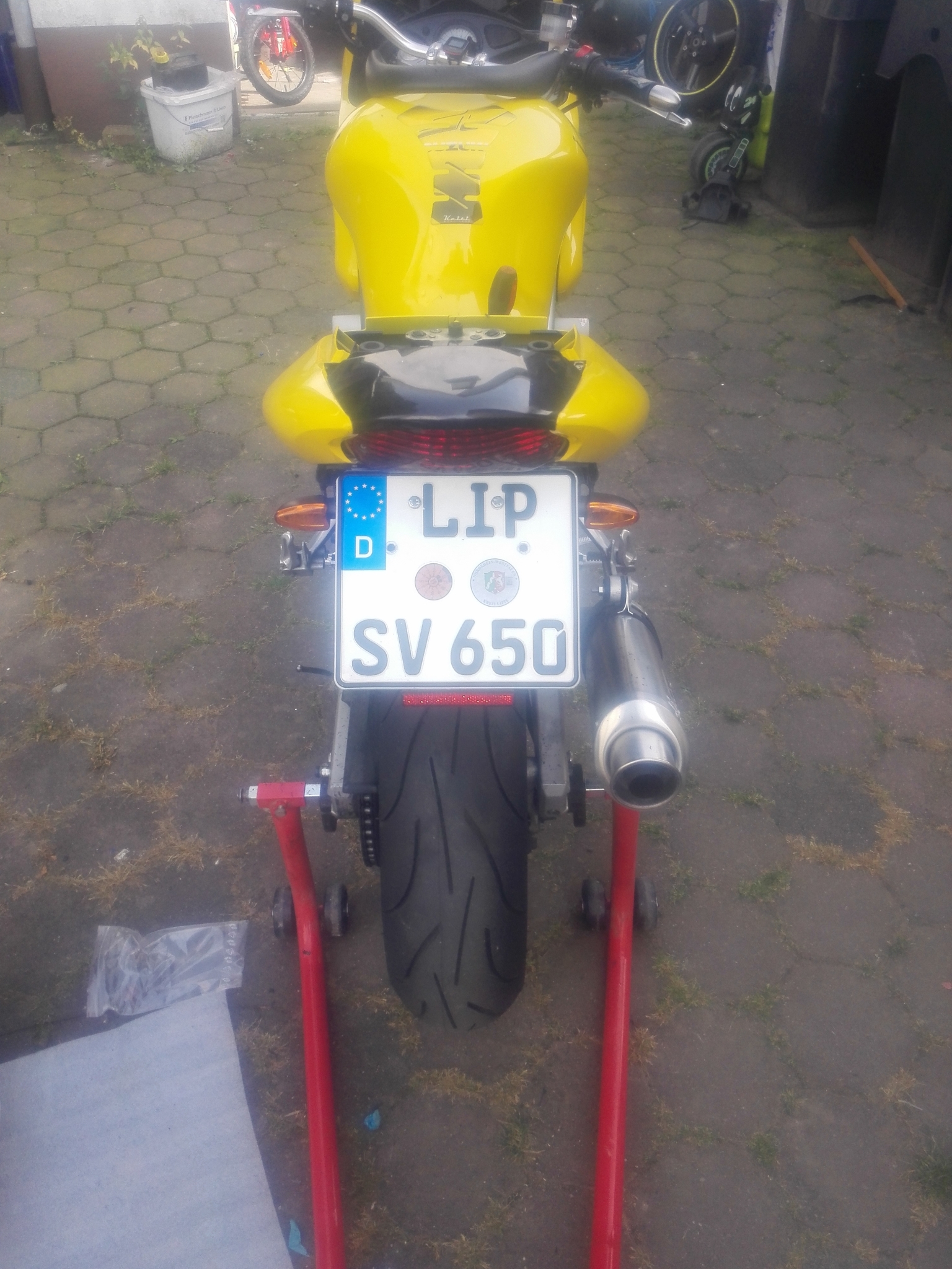 guzzistoni hat geschrieben:Hast du geprüft, ob das Hinterrad das Kennzeichen nicht berührt, wenn es voll einfedert?