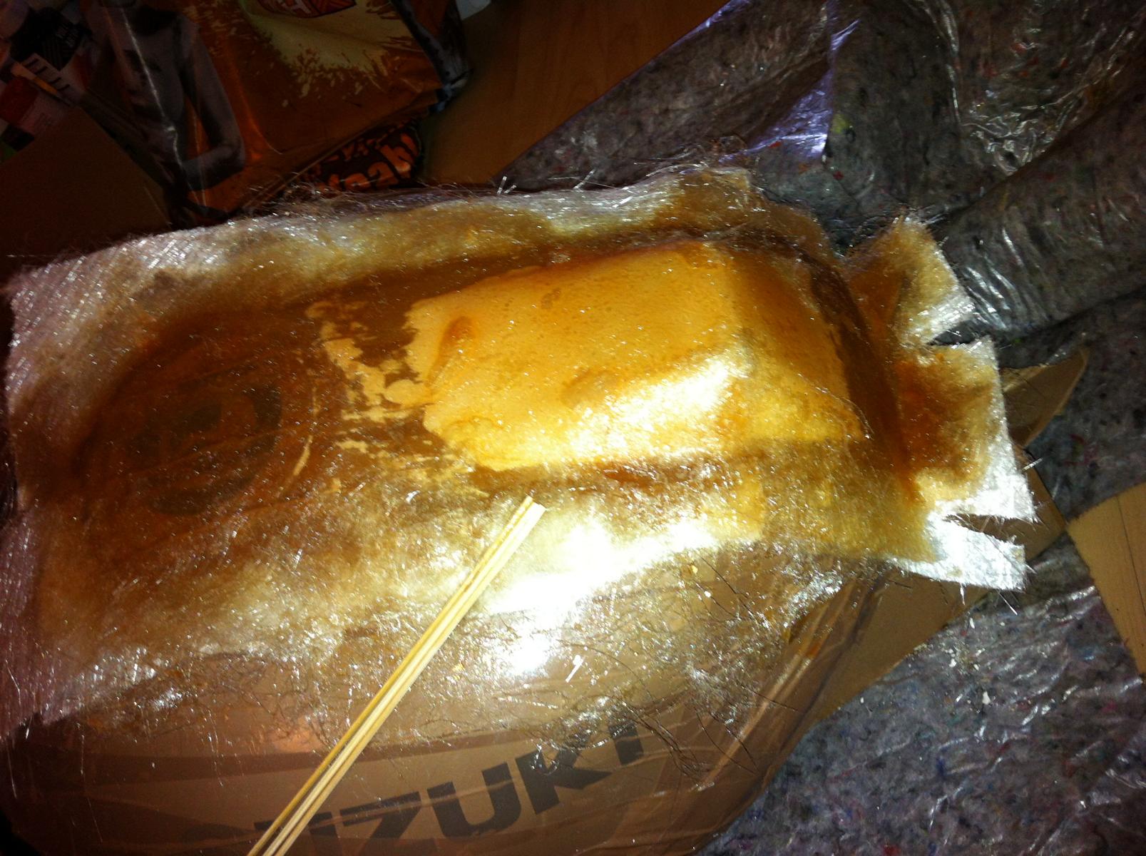 Inzwischen ausgehärtet und groooob zurechtgeschnitten....