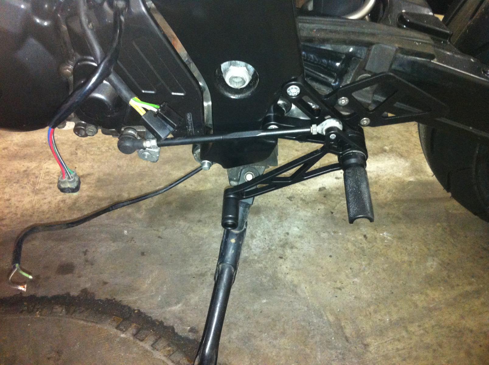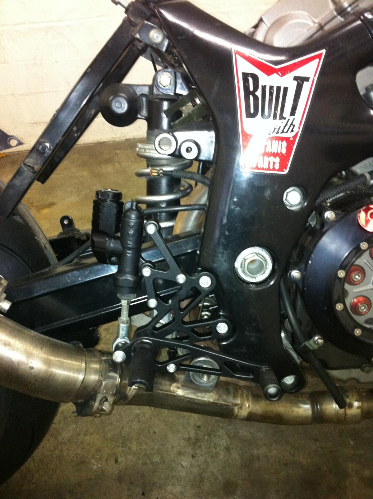 Die Fussrasten sind auch montiert,gefalln mir noch nich 100%ig,mal schaun wie s sich sitzt wenns Heck dran is.