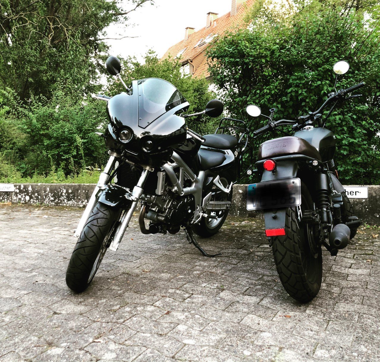 Meine Knubbel, direkt nachdem man mir sie endlich auf den Hof gestellt hat (und die "kleine" Brixton meines Freundes)