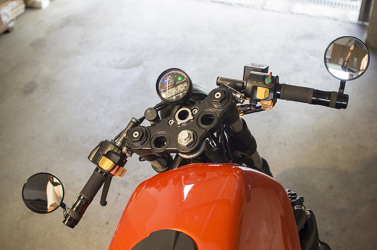 Das Motogadget m-lock selbst (kleiner runder Knopf neben dem Acewell ACE 4553 Tacho) wandert noch an die Seite unter eine Abdeckung, wo es dann letztendlich komplett "unsichtbar" ist.