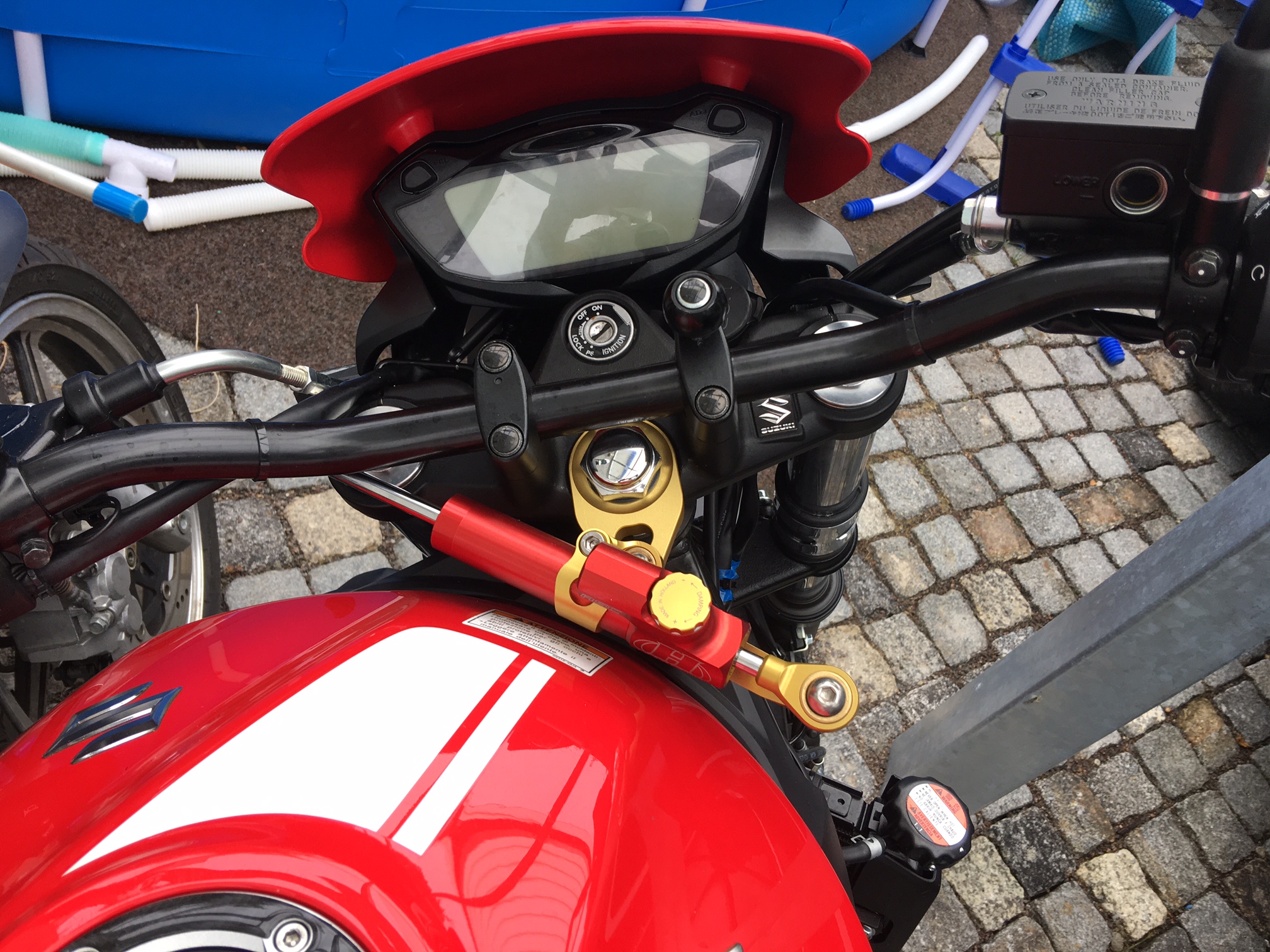 Auspuff, Lenker, Hebel, Reifen, Fußrasten , Scheinwerfer LED, Blinker, Lenkungsdämpfer, Anbauteile Suzuki außer die Zubehör Sitzbank, Navi,