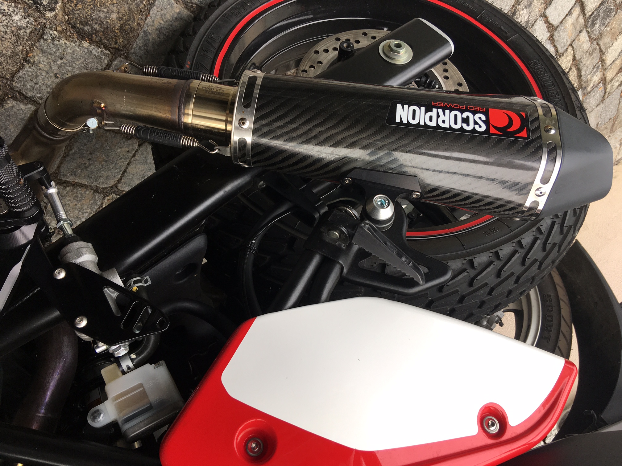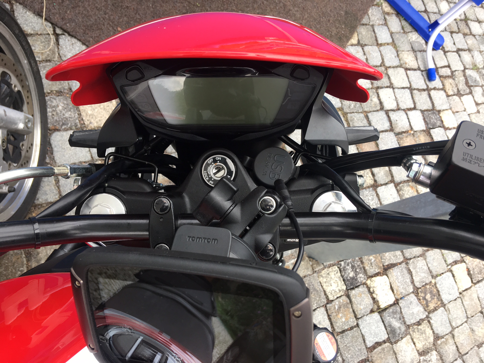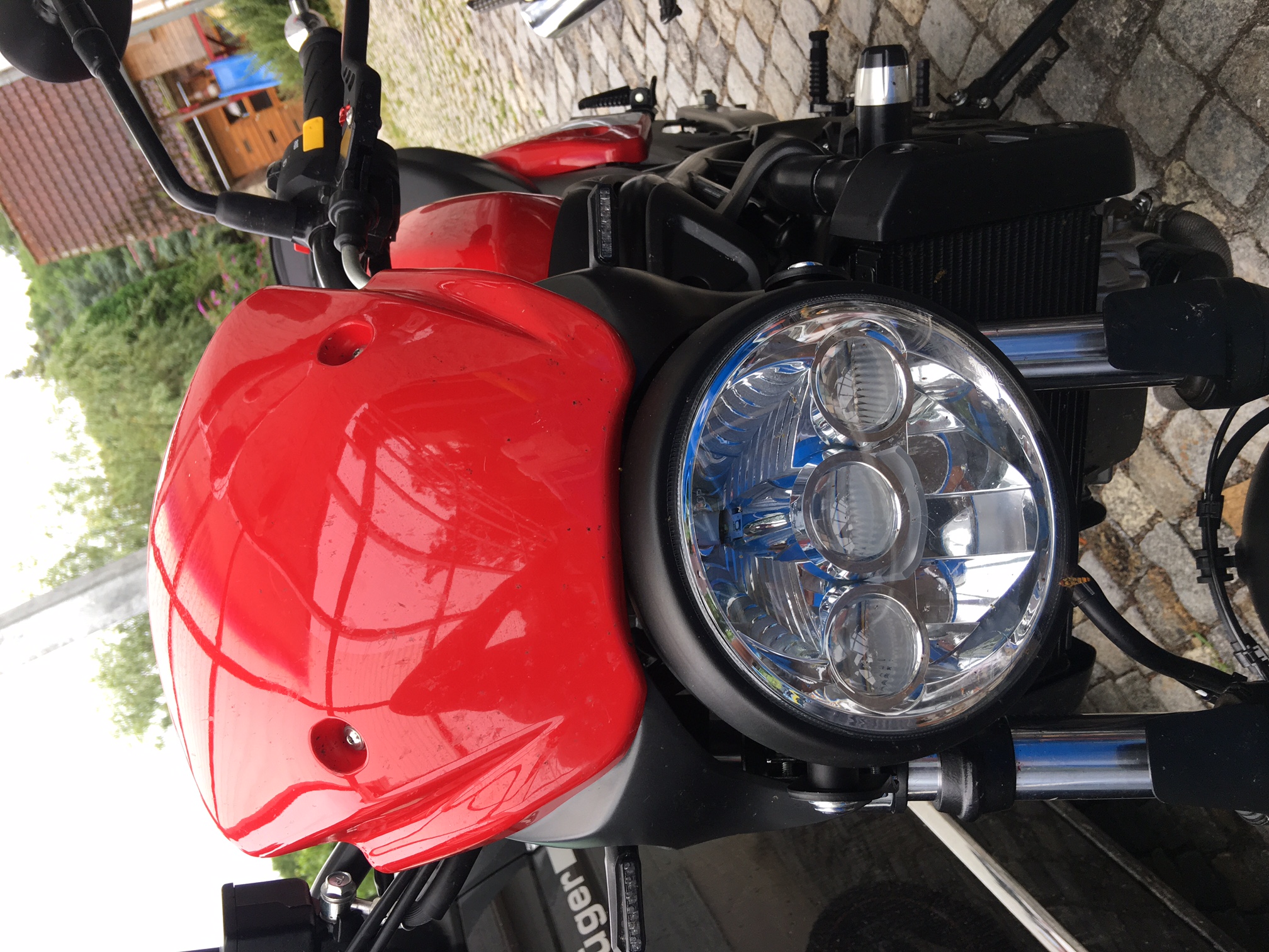 Plan für August : komplett Stahlflex in Rot, Umbau Lampe auf schwarzen LED Lampenkörper ,Ständeraufnahme und Lenkerenden von Rizoma. ( Bilder dazu folgen )