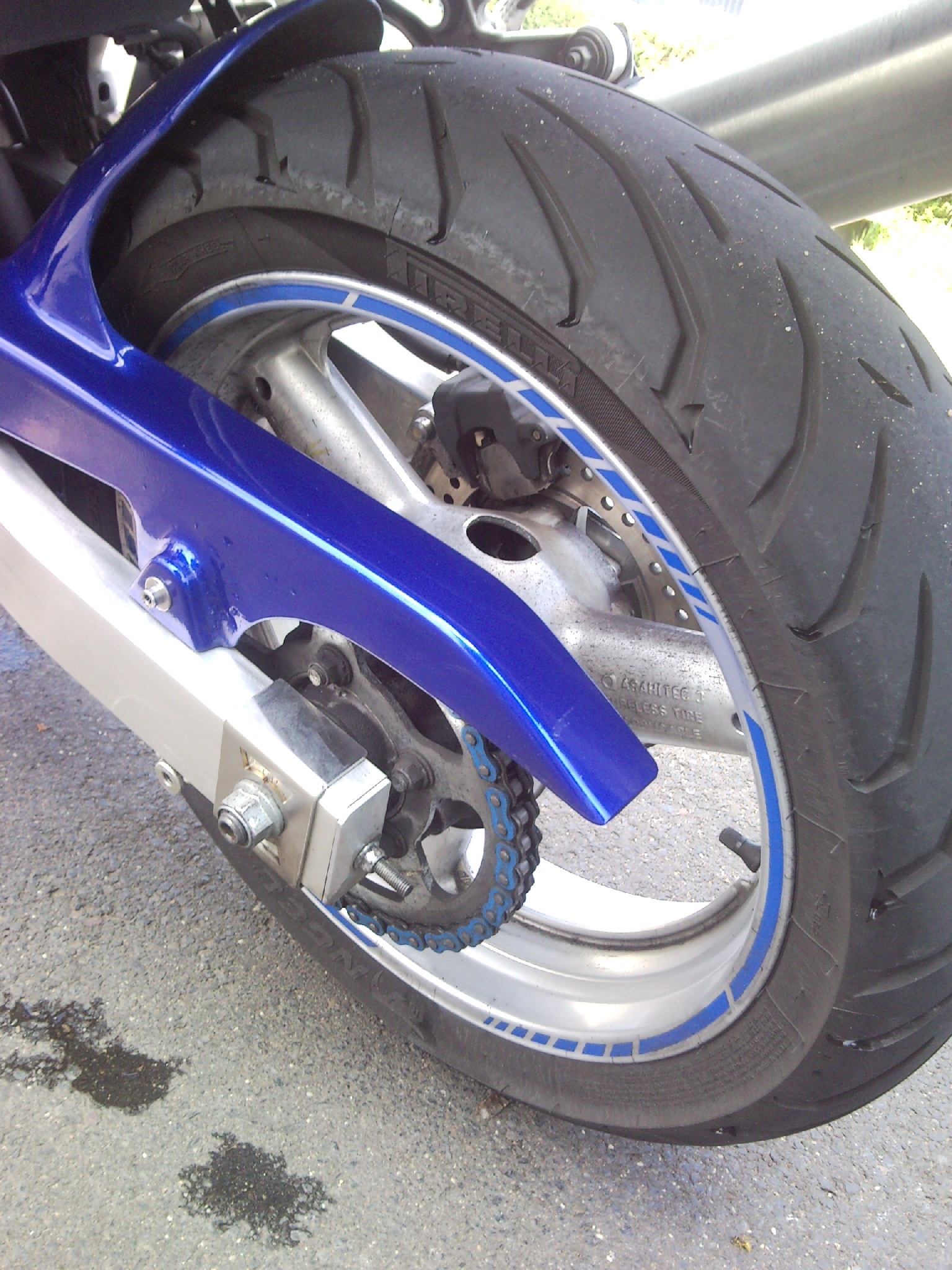 Hast du von den Felgenrandaufklebern noch nen Reservestreifen übrig, wenn ja würd ich doch an der vorderen Felge das mal richtig aufkleben :mrgreen: