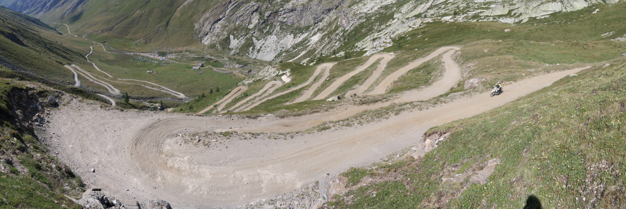 Sag das nicht. Bis auf den Zeltplatz, den du da auf der Hochalm siehst, sind Motorräder jeglicher Art gefahren, obwohl die Strecke bis dahin auch ähnlich aussah. Und auch auf dem weiteren Weg hab ich neben einigen großen GSen auch die eine oder andere Straßenmaschine gesehen. Aber meine SV hätte ich da auch nicht hochquälen wollen...