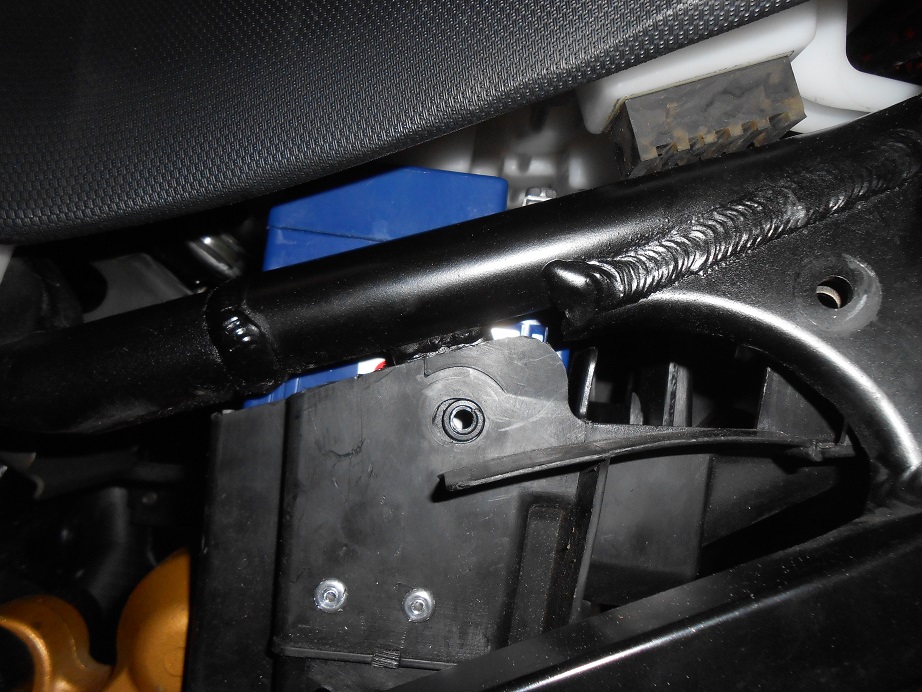 ich habe den Werkzeug + Batteriekasten an das Federbein angepasst. Ich habe reichlich abschnitten, sonst passt da gar nichts. Den neuen Boden habe ich aus Alu gemacht und an die HUV angenietet. Als Batterie habe ich z.Zt. noch eine von der Honda CBr600RR zur Vfg