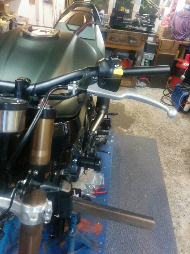 Der findige Schrauberfuchs hat weiter dran gearbeitet, den Lenker und die Schalter und Kabels zu verlegen.