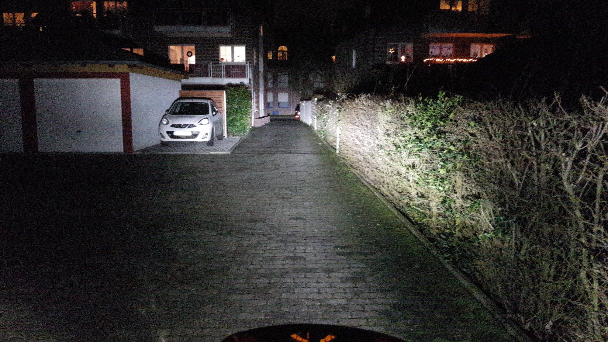 Nein, im Dunkeln bin ich noch nicht so richtig gefahren, bisher war ja nur eine LED drin.