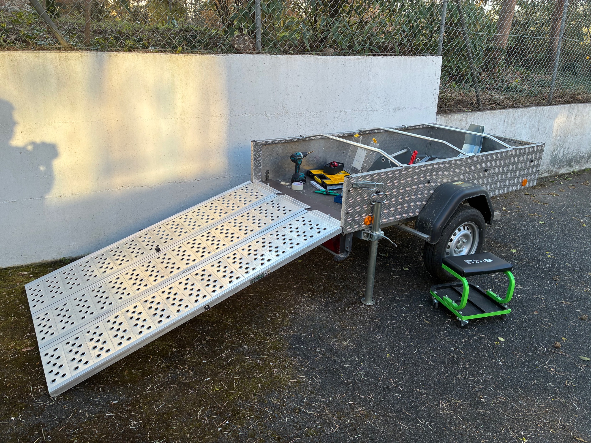 Angedacht war eine Wippe einige Zurrbügel und eine kleine Auffahrrampe. Nach etwas stöbern im Internet wurde es doch etwas anders.