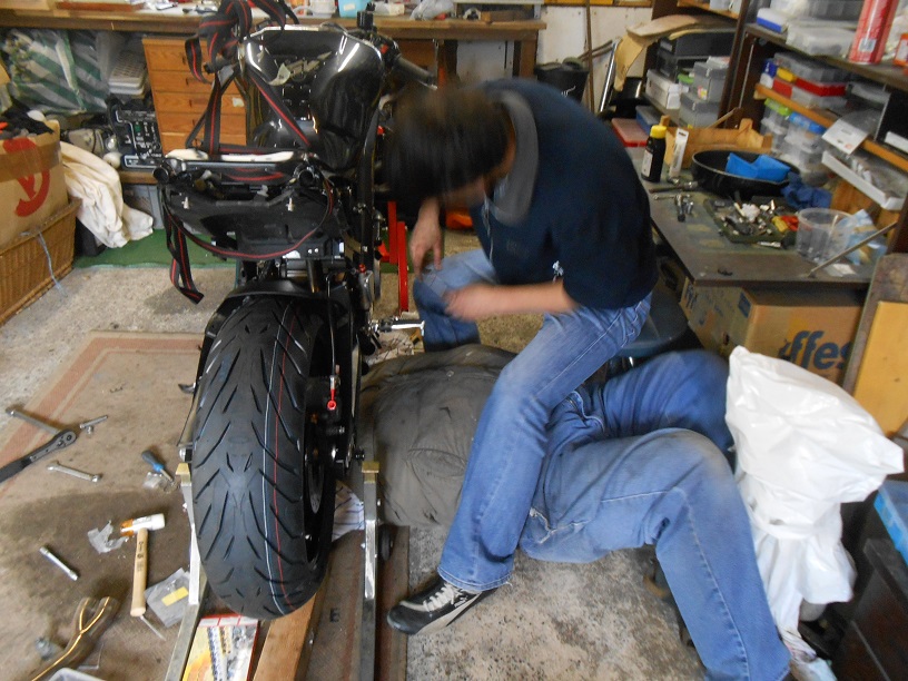 Was noch ansteht: Lichter hinten müssen noch angeklemmt, Ritzelabdeckung überlegt, Kupplung ausprobiert, Scottoiler verlegt und Kette vernietet werden.