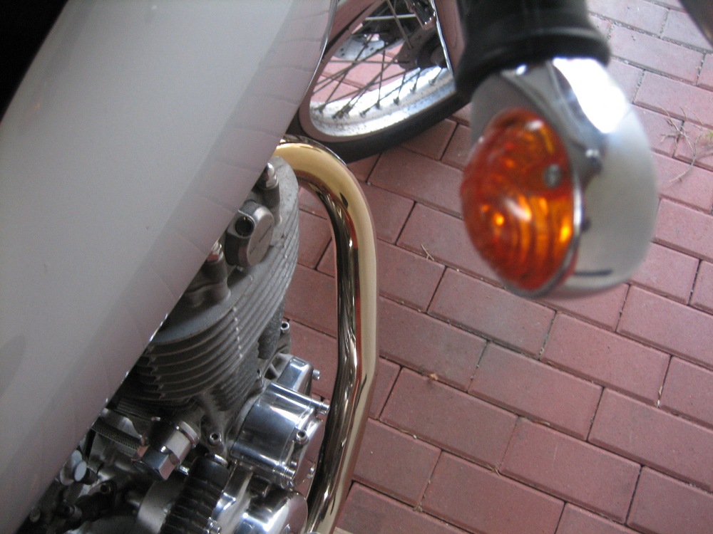 Yo klar, macht mich fertig und bringt mich auf kranke Ideen...die geil aussehen und meine Frau ums Eck tanzen lassen. Aber lieb seid ihr schon! Nein, erst mal will die SR bewegt werden. Sie war von Anfang an kein Showbike und nichts mit Hightech, deswegen darf das auch gern so bleiben. So wie sie gerade dasteht, so paßt das zu mir...ich war schon früher viel zu langsam für meine Motorräder...jetzt fühlt sich das viel besser an. Steckt ne Menge Kohle drin in der SR, aber ich denke, das war es wert..