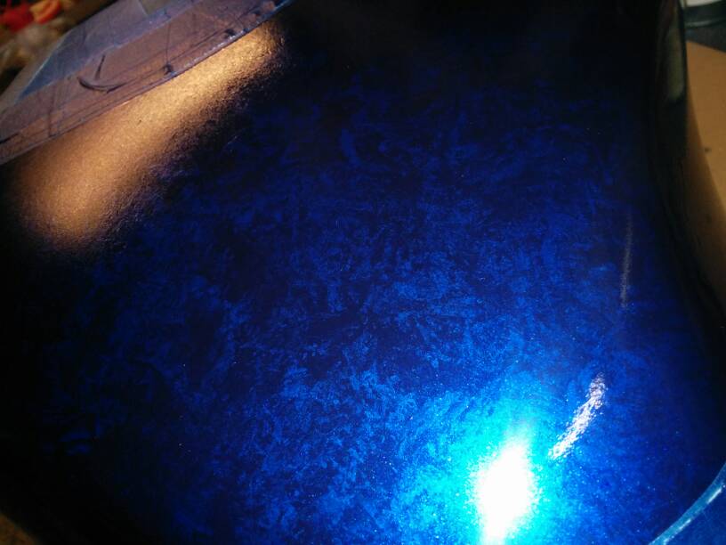Bei Licht betrachtet, ist die blaue Marmorlackierung nicht schlecht geworden. Wenn ich Zeit und Ruhe!! finde, mache ich heute noch das Klebeband ab, dann kann das Ergebnis erst Recht beurteilt werden.