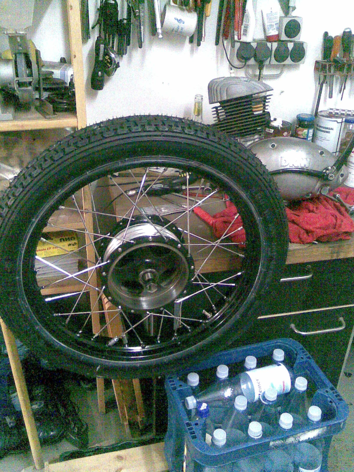Ach ja, Vorderrad ist schon mit Reifen versehen: