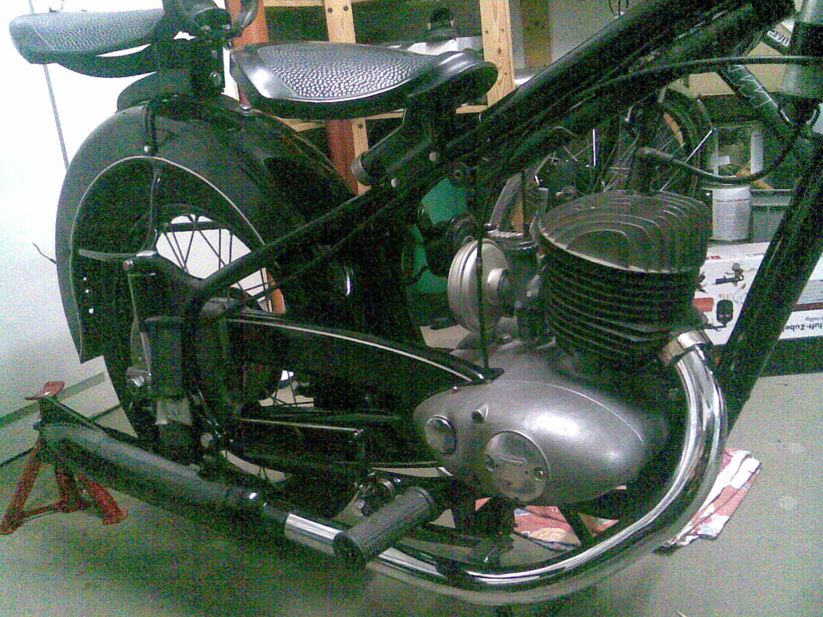 Heute die erste Runde ums Eck gefahren, allerdings noch ohne Schutzblech vorne, aussenelektrik am Scheinwerfer (muss wieder reingekramt werden...) und mit abgelaufenem TüV. Rennt gut, die neue Kette hat sich definitiv gelohnt!