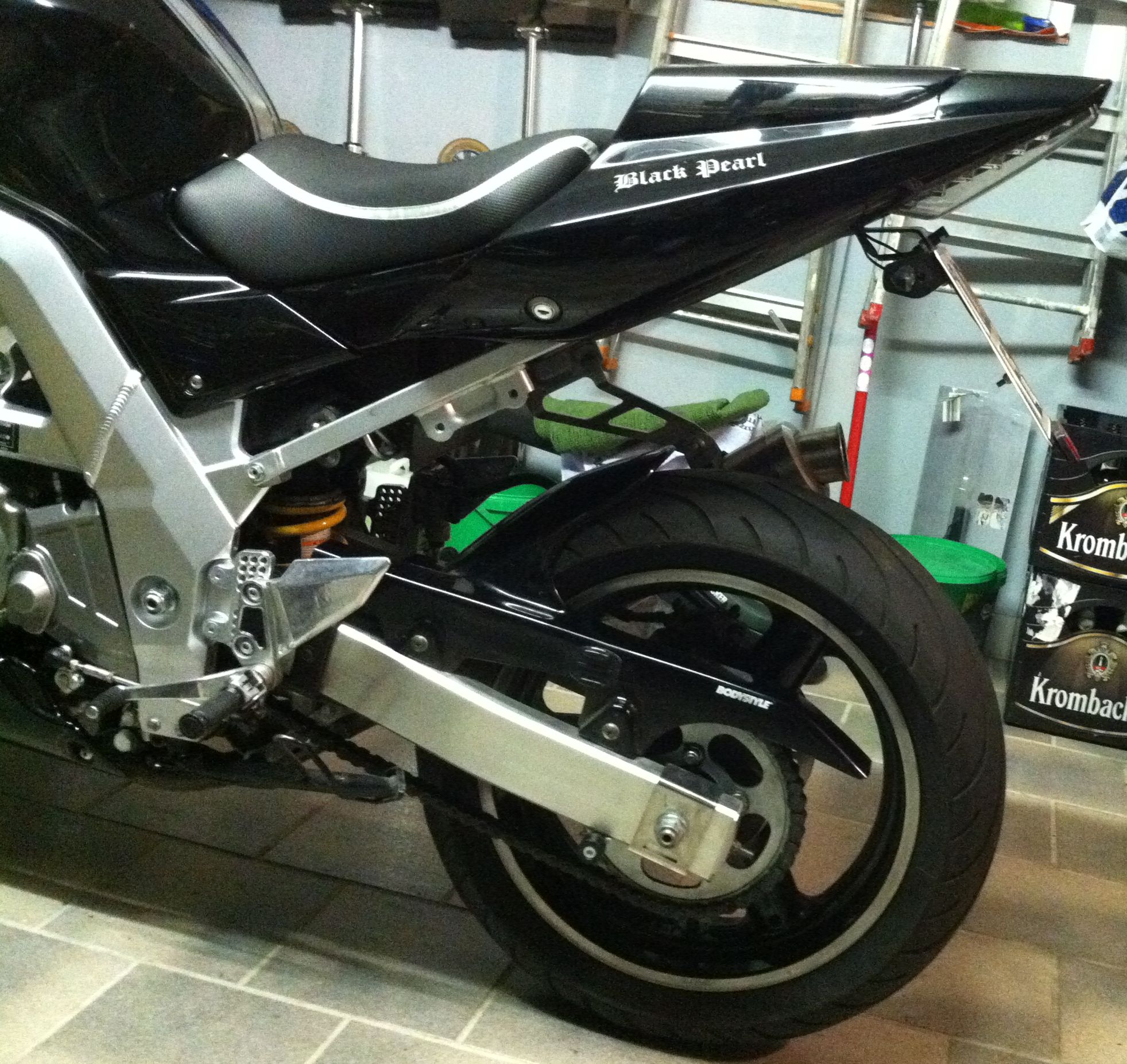 Felgenlackierung ist schon mal fein. Und wie Andi schon sagte, weg mit diesen seltsamen Stickern. Und was auch gerade noch ins Auge fällt. außer den seltsamen Hängeohrenspiegeln...Deine Sitzbank geht ja gar nicht...Okay, wenn Du draufhockst, sieht man es nicht. Aber wie zum Teufel kommt man bei einer KANTE auf so seltsam geschwungene Formen bei den Kederbändern...schlimmer Designunfall... :mrgreen: